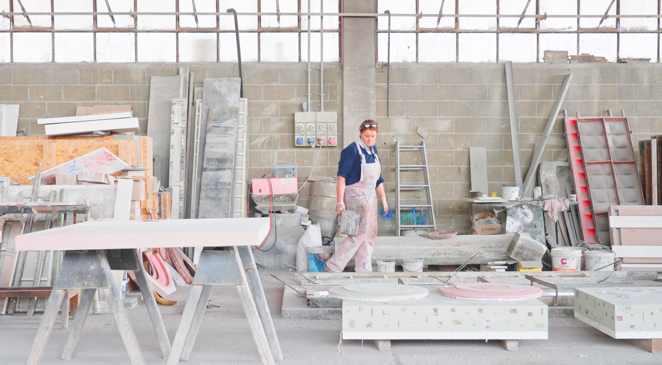 Nerikomi, a Japanese ceramic production technique, inspired the most recent experiments. Simona Sporchia creates coloured ceramic tesserae in her Monza workshop, which she then cuts, fires, and inserts on backgrounds made of concrete agglomerates and natural materials such as marble and recycled shards. The Venetian floor served as inspiration, with its chromatic bases in various shades punctuated by coloured grits.