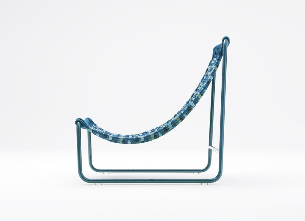 Hammock is an outdoor lounge chair inspired by its swinging namesake, typical of the tropical beaches; it represents a contemporary interpretation of a traditional object, easy to transport and comfortable, conveying an immediate feeling of leisure and relaxation. Hammock marries the qualities of an industrially construed structure with the gently draped, handcrafted seat.