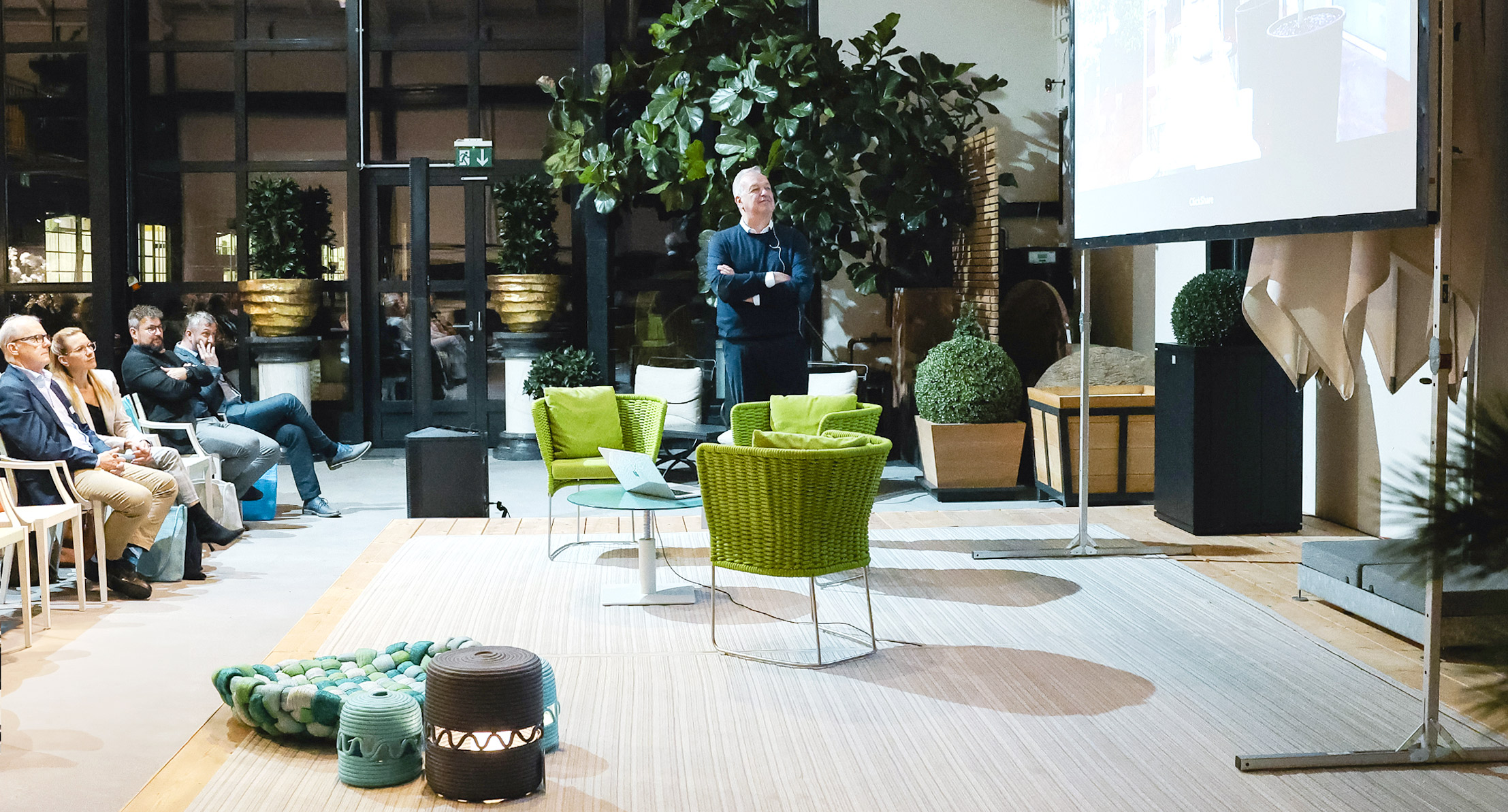 Paola Lenti participated in “Design Processes in the Hotel Industry,” an event held on November 2nd at Hauser Design’s showroom in Freienbach, Switzerland. The occasion aimed to elucidate the core principles guiding the brand’s philosophy, with a particular emphasis on its approach to outdoor design within the hospitality sector.