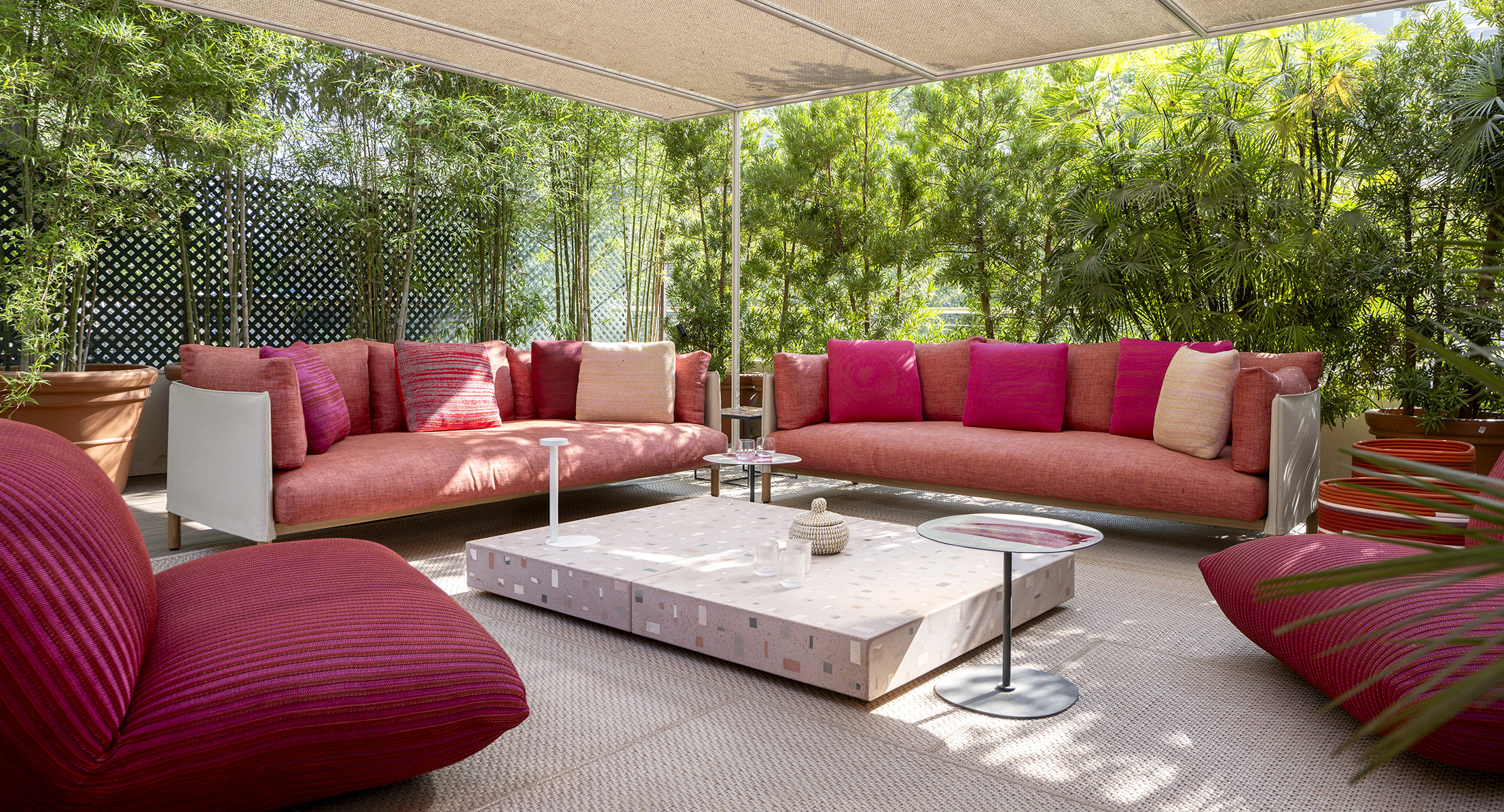 In this unique setting – both international and deeply rooted in local traditions and craftsmanship – Paola Lenti stands out with its bold, conscious vision and distinctive design philosophy. As part of this collaboration, the brand has designed an exclusive 230-square-meter terrace, featuring signature outdoor furniture, unique colour palettes, and exclusive fabrics, embodying the essence of Paola Lenti’s unmistakable identity.