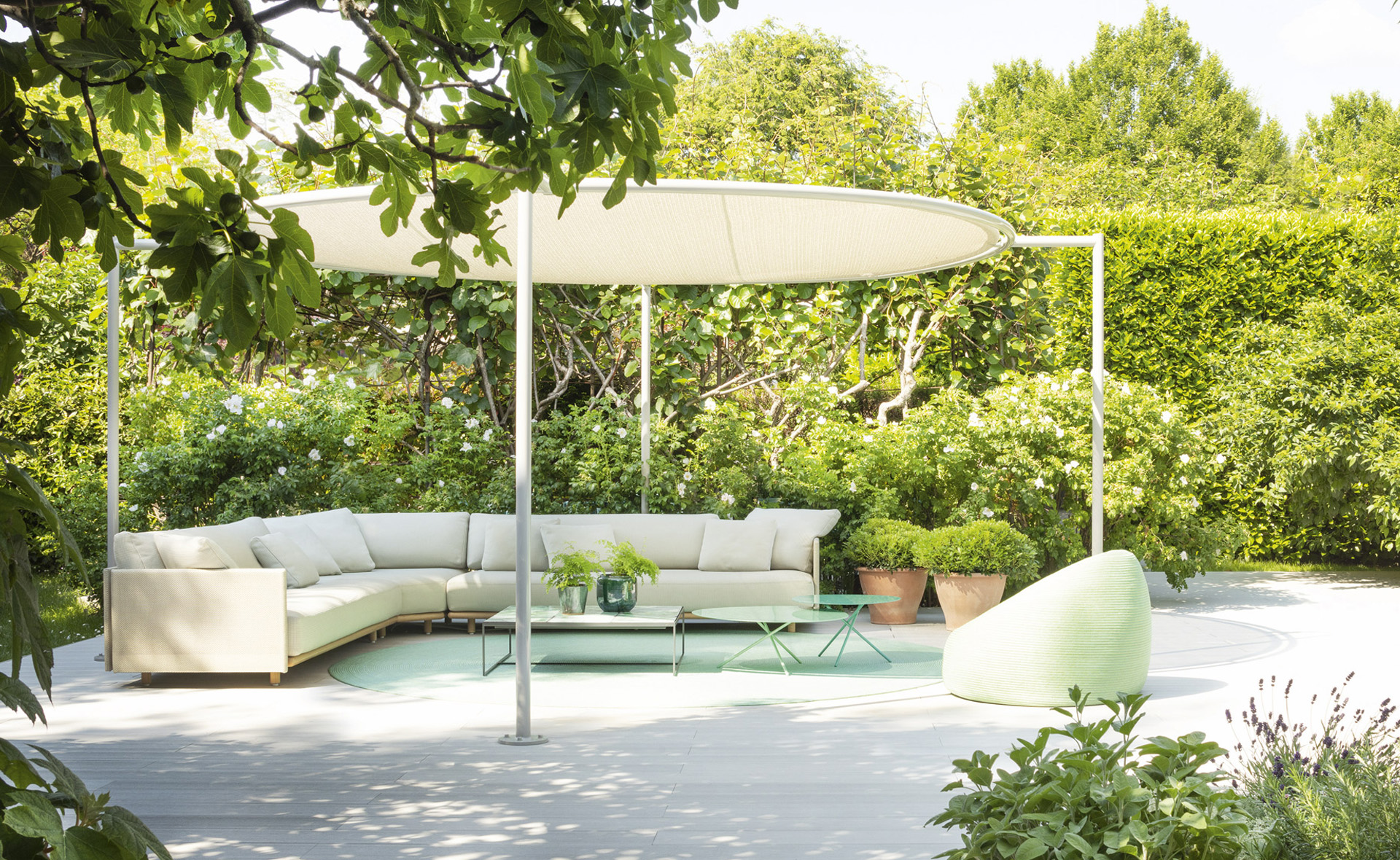 In the garden that surrounds the showroom, next to iconic pieces of the company such as Harbour, the modular sofa awarded with the Red Dot Award 2021, are the new collections such as Eres: sofas, chaise longue and outdoor beds in natural and eco-friendly fabrics, with soft and restful colours. Easily convertible into indoor complements, with a pleasant cocoon effect.