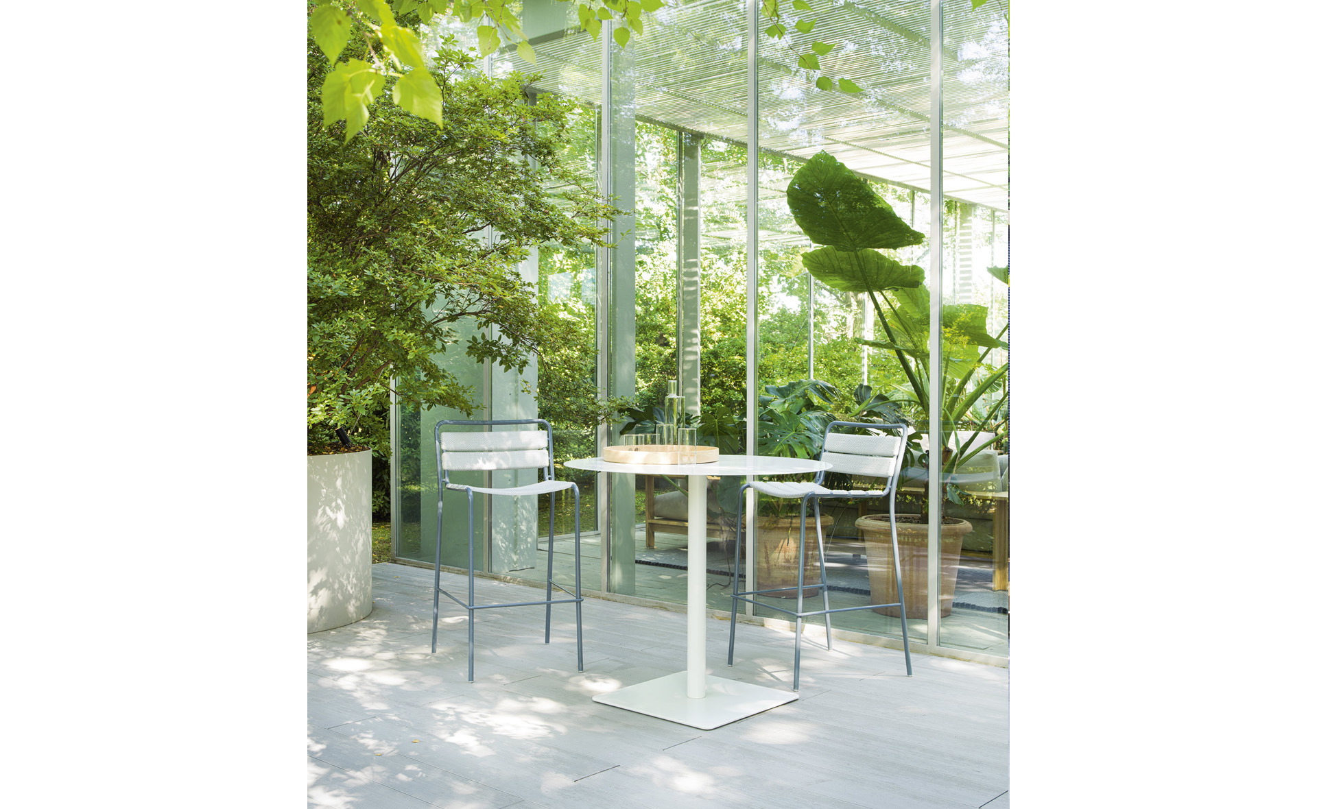 The “garden terrace” on the first floor plays with the green hues: a shady place (Resort collection) and dedicated to relax (Harbour sofa and Ami armchairs). A few steps, and a blue oasis appears – a city-graceful style – with cosy armchairs (Nido collection), and glazed tables (Sciara).