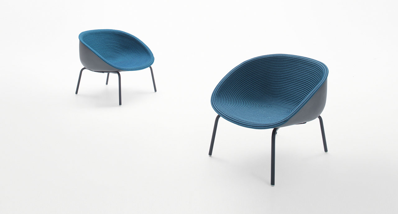 Cord upholstery cover: removabile and available in Rope, Rope mélange or Twiggy cord sewn in a spiral-like pattern.