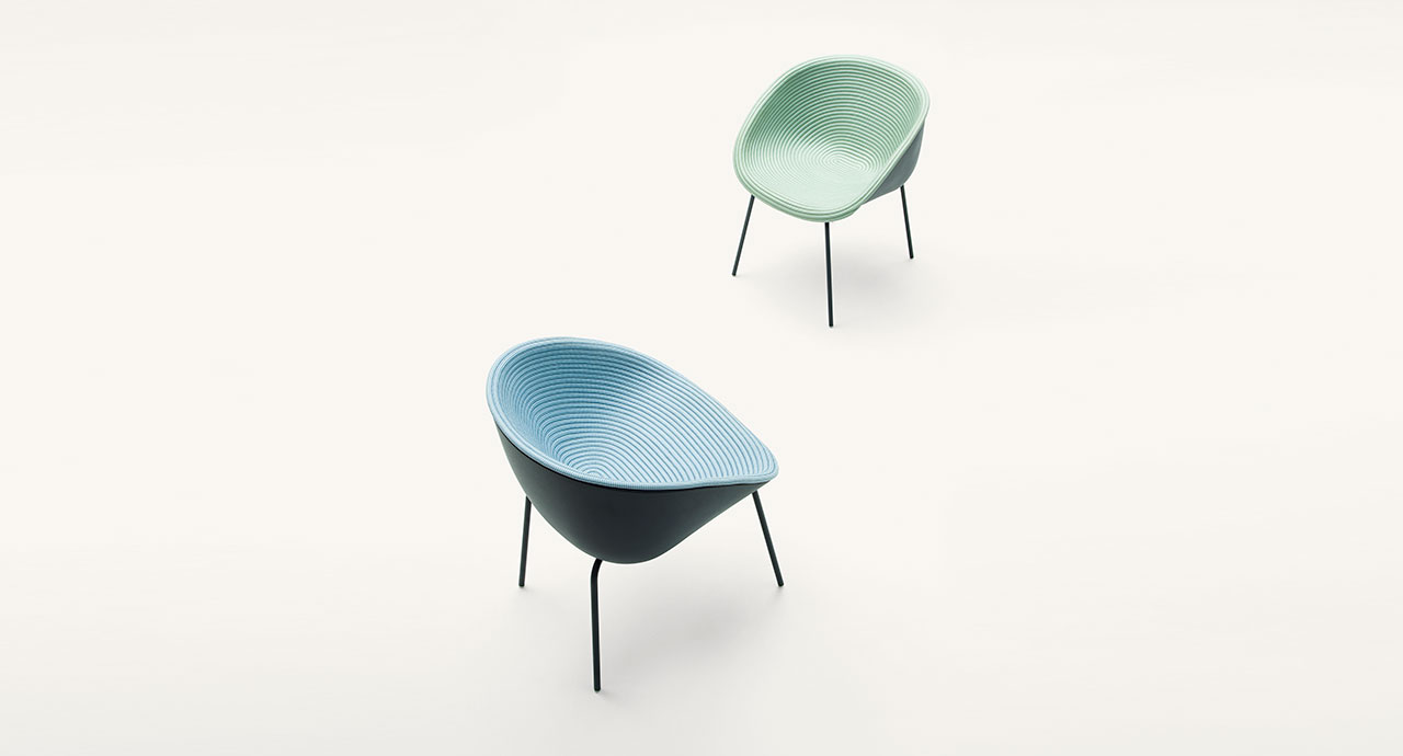 Cord upholstery cover: removabile and available in Rope, Rope mélange or Twiggy cord sewn in a spiral-like pattern.