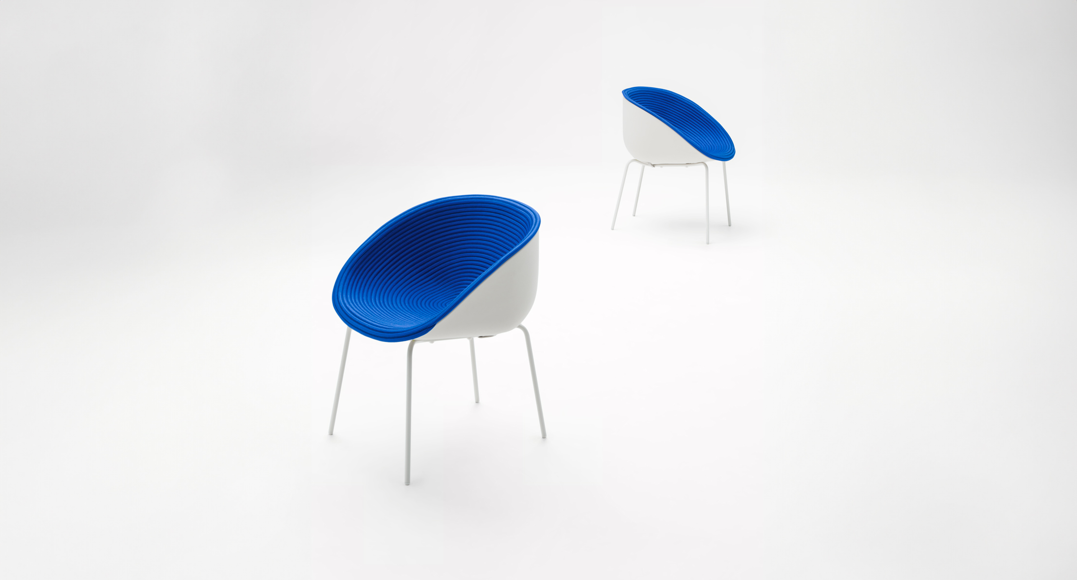 Shell: molded polyethylene, available in bianco, ghiaccio or grafite colour, combined with the steel or aluminium base.