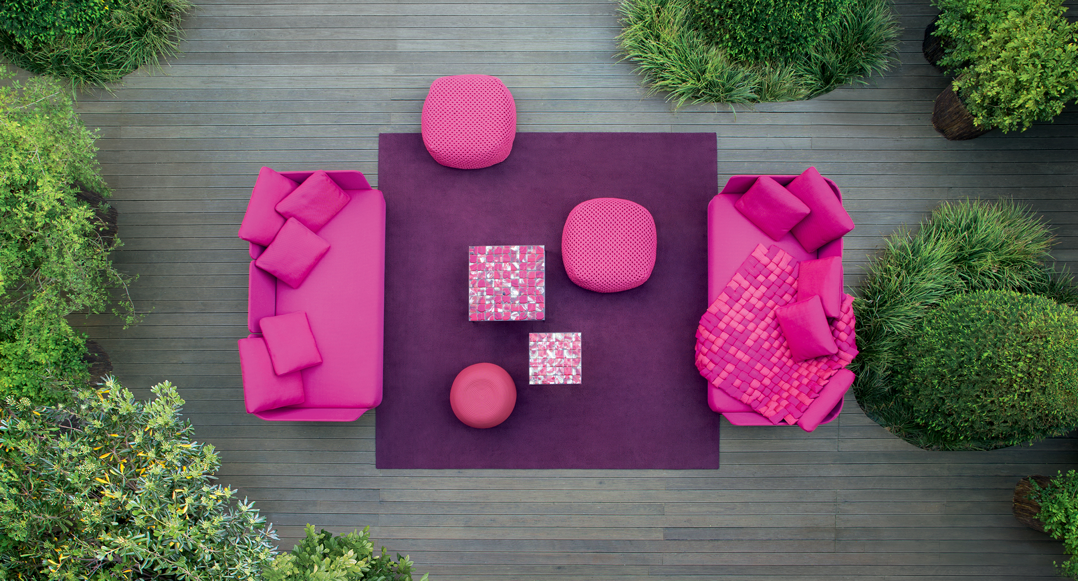 Berry. Left: Rope braid 1319. Right: Rope braid 3613. Back: Rope braid 1937
