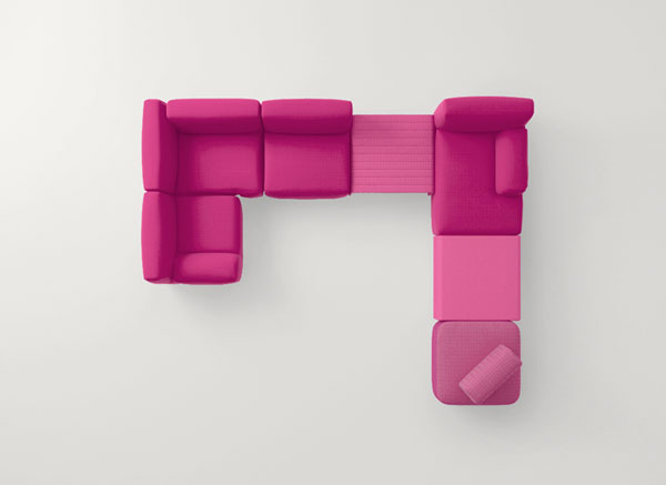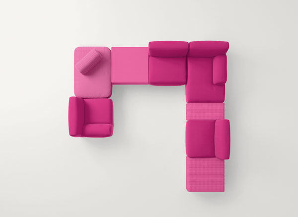 The series Frame also includes a chair, armchairs, chaise longue, platforms, benches and modular elements