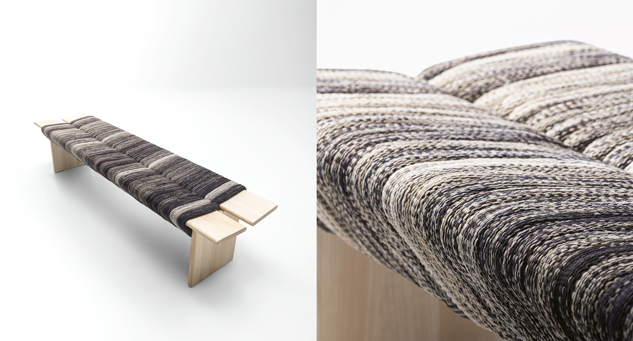 The rings used on the Naga benches are exclusive to Paola Lenti. The knitting is full-bodied and soft at the same time, so much so that it does not require padding.