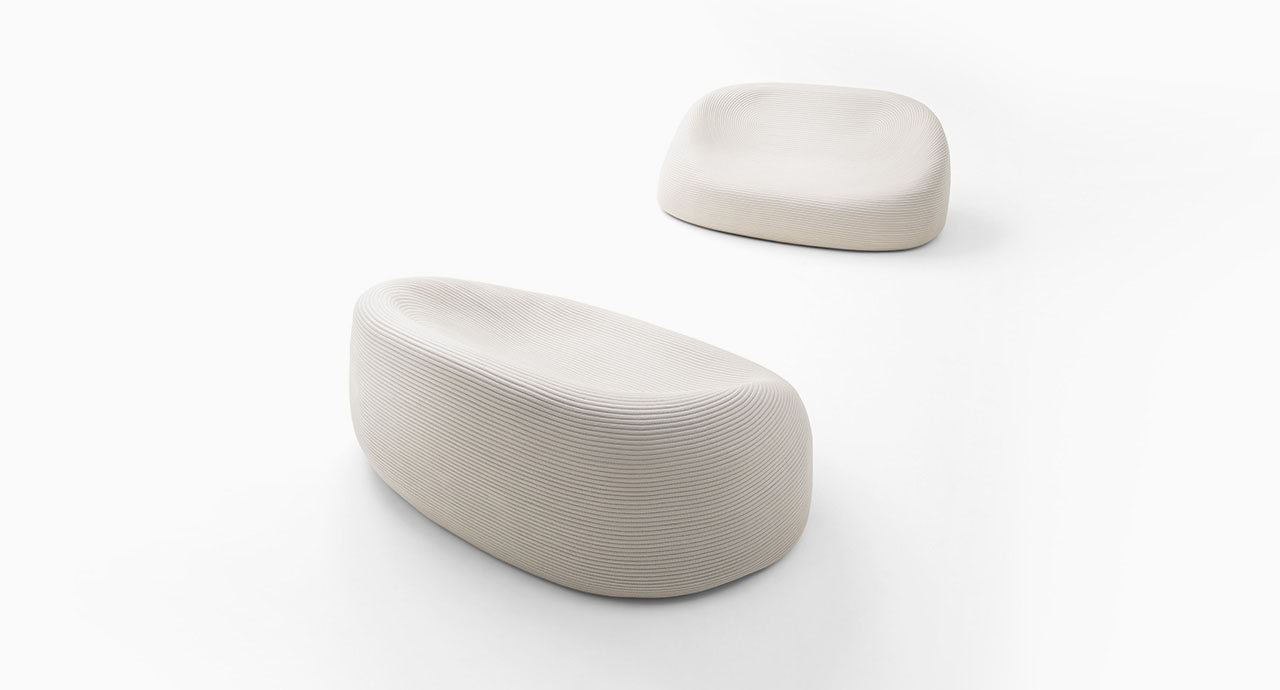 The series Otto also includes an armchair, a large seating element and poufs available in different shapes and dimensions.