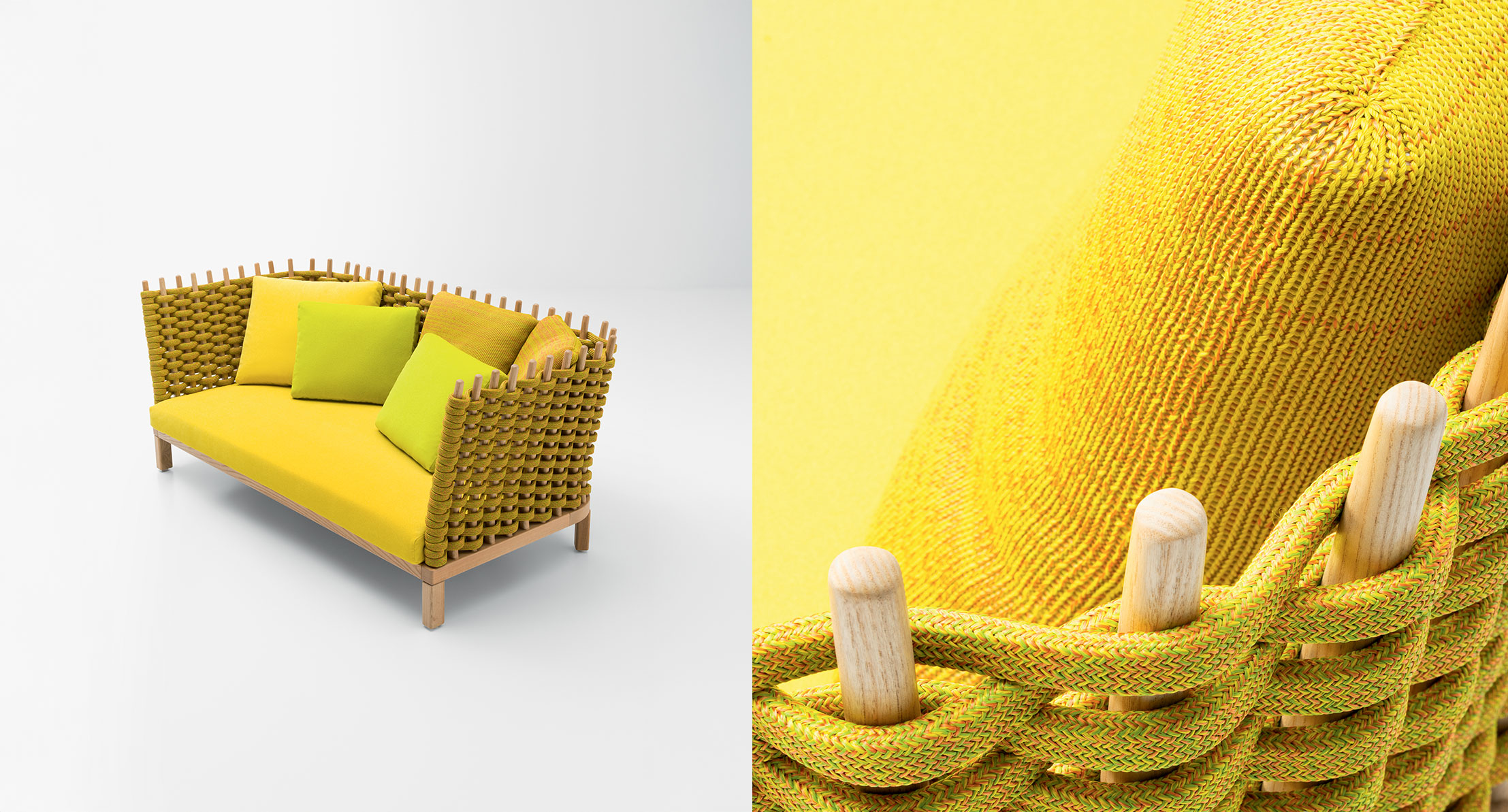 The Wabi series also includes an armchair and a lawn-swing available in the same finishings.