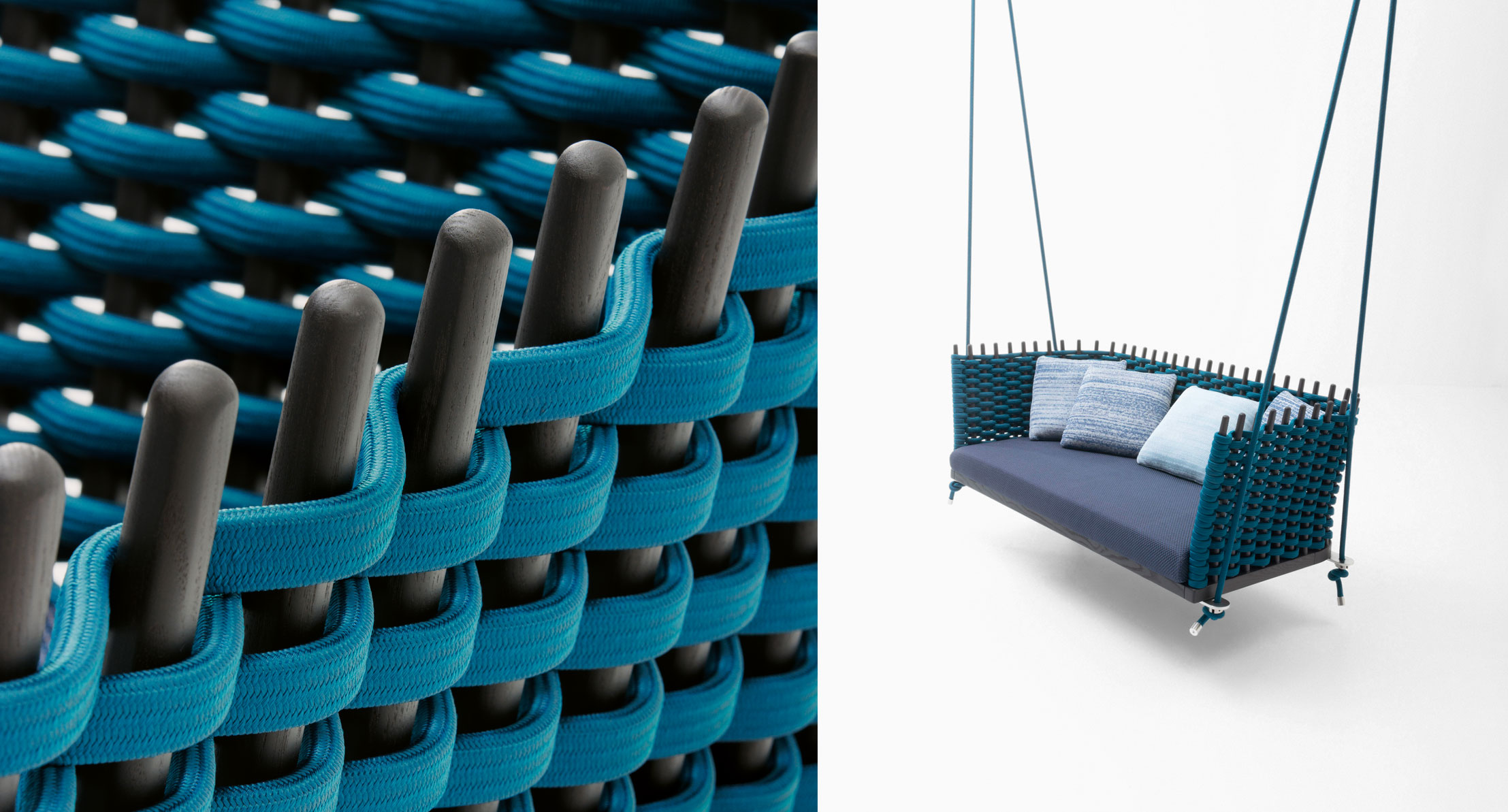 Structural upholstery: fixed, hand woven with a waterproof silicone profile covered with Rope yarn or with Aquatech yarn.