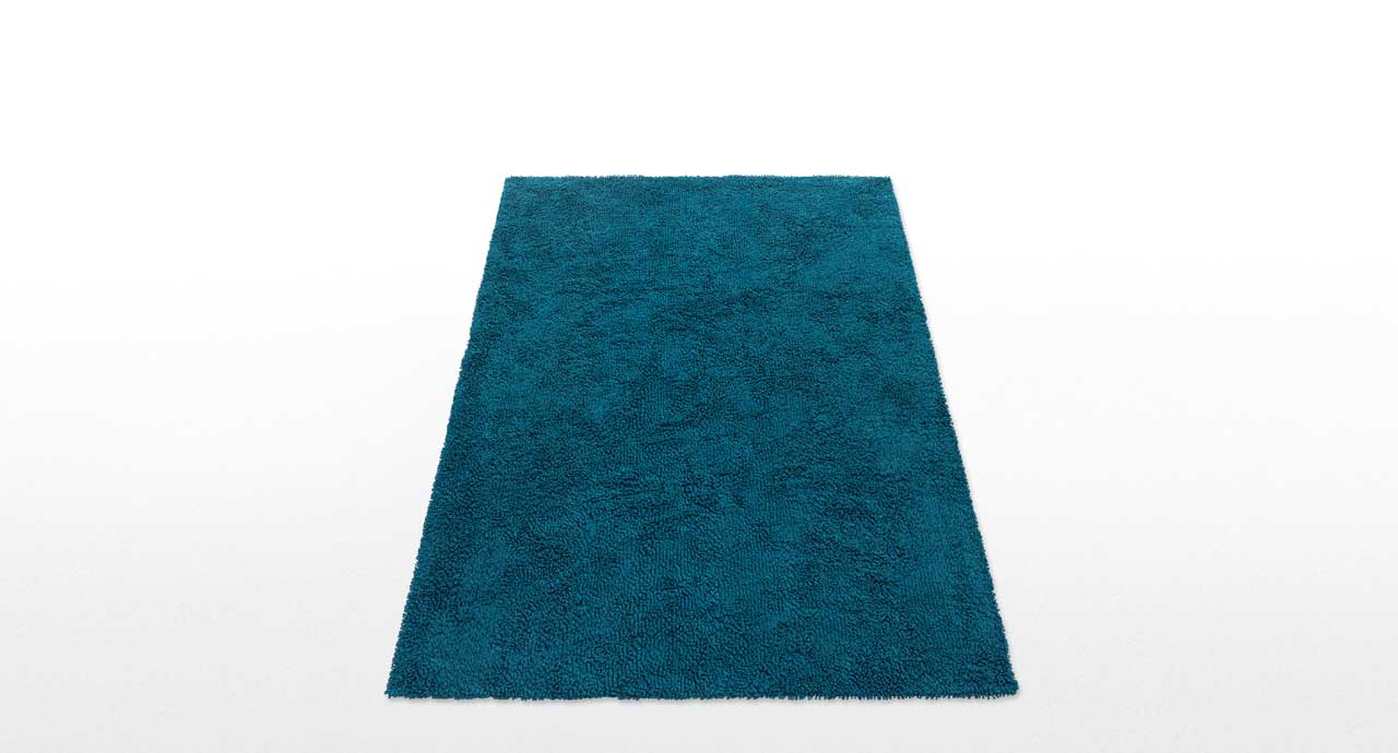 The texture is created with a one- or two-colour round braid that is tufted to a synthetic backing to create 2 centimeters high loops.