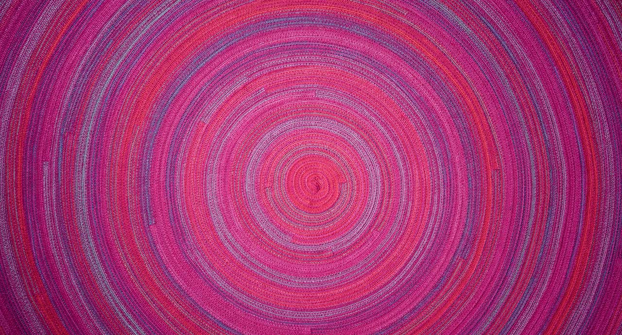 The surface of the rug consists of a single round, square or pentagonal element which is created by winding up the cord in spiral-like design.