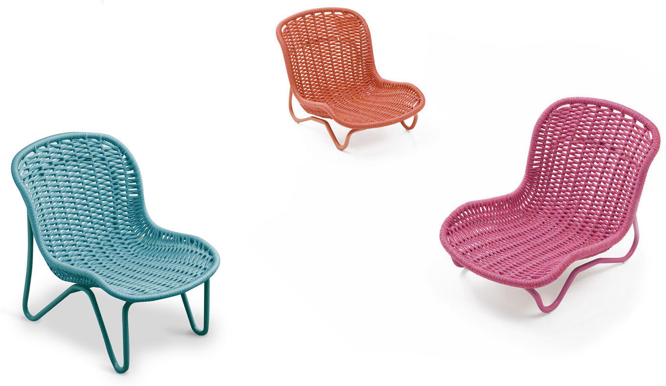 Gli intrecci originali in midollino sono stati aggiornati utilizzando l’esclusivo filato tecnico Twiggy, un materiale per outdoor molto performante perché resistente, impermeabile e riciclabile al 100 %. Il risultato è una collezione di poltrone e lettini dalle linee arrotondate, con il sapore degli arredi da giardino di un tempo e caratteristiche tecniche frutto della ricerca più avanzata. “Ho scoperto Clara Porset facendo una ricerca su Luis Barragán e sul suo straordinario senso del colore – racconta Paola Lenti –.