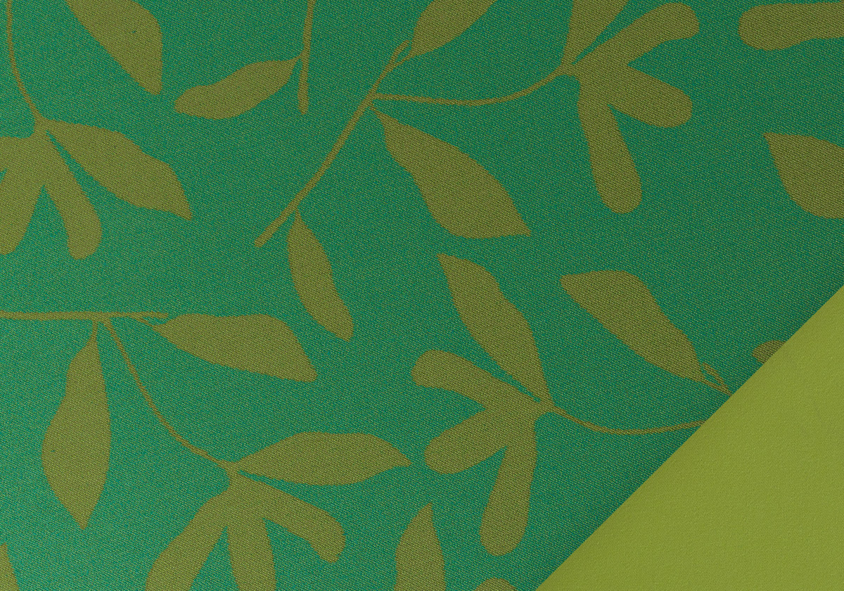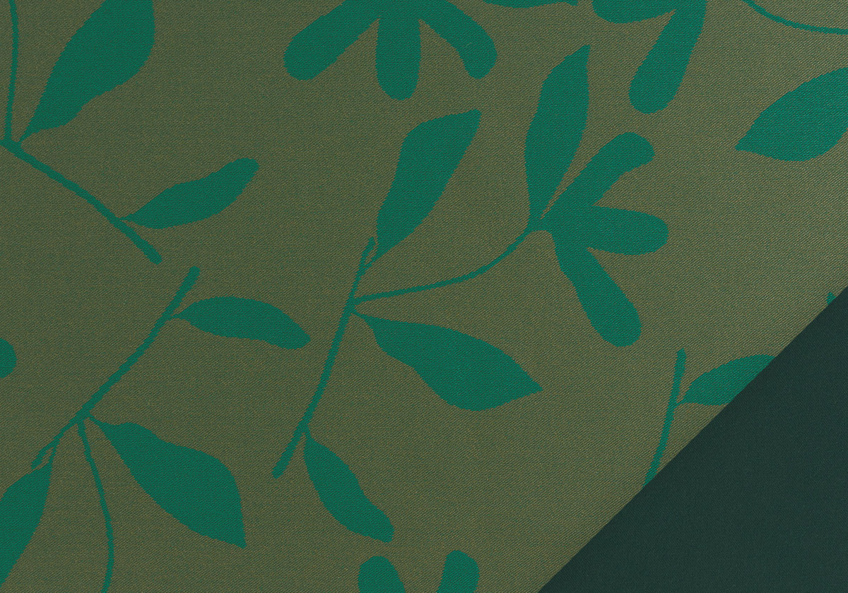 Herbier è proposto con un lato in colore unito e un lato con una decorazione che richiama i motivi floreali degli ombrelloni anni ’50. Il disegno è ispirato alla natura e sembra riprodurre sulle superfici, con una grafica essenziale, le ombre generate dai rami degli alberi e dalle foglie quando in estate vengono mossi da venti leggeri.