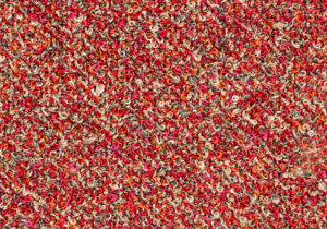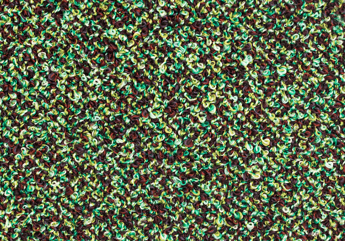 Per ottenere l’aspetto materico di questo tessuto, la lavorazione più importante è quella a monte della tessitura. Una volta lavorato a telaio, è il filato a creare il particolare effetto bouclé che caratterizza il tessuto. La sua