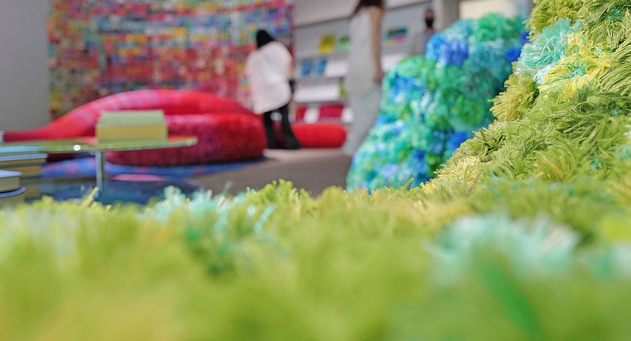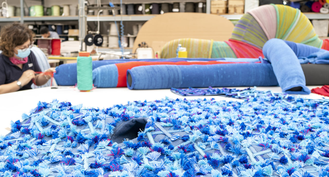 Il risultato è un’edizione speciale di cinque sedute informali e un arazzo, tutti realizzati a mano. Pezzi unici a metà tra il design e l’opera d’arte che portano con sé un messaggio universale: utilizzare risorse già esistenti per non sprecare e produrre in modo più etico.