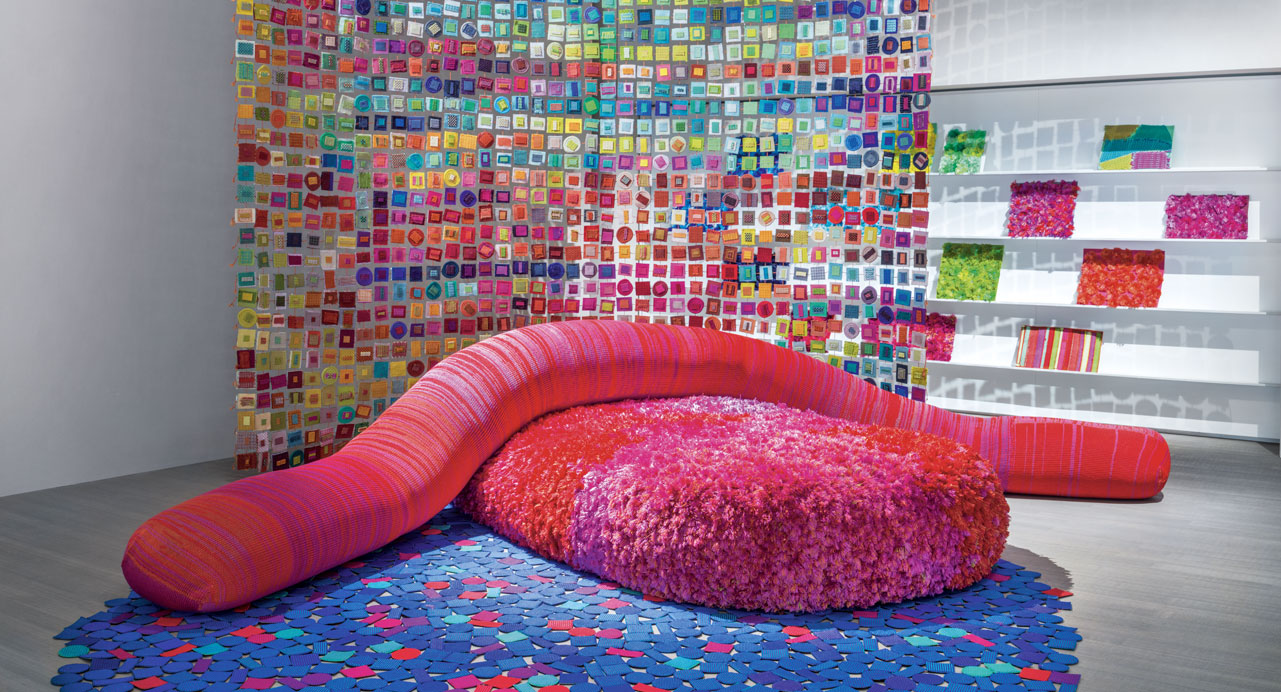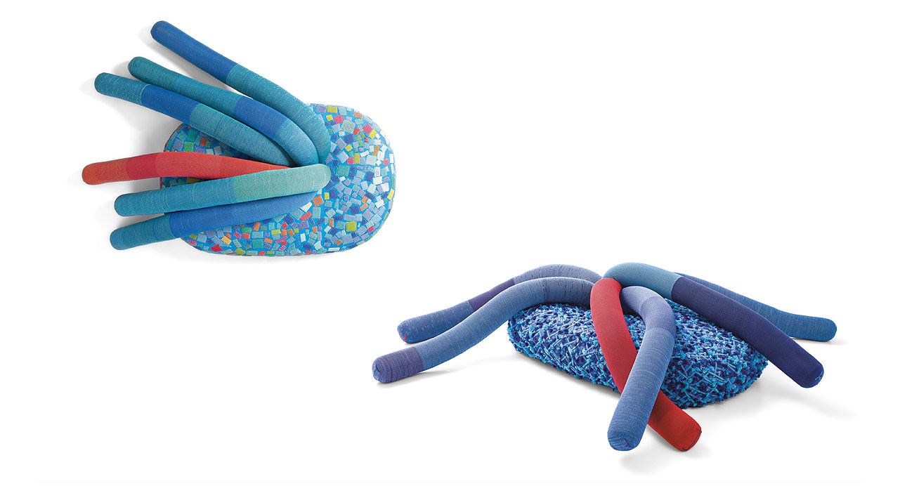La nuova collezione Metamorfosi firmata dai designer brasiliani Fernando e Humberto Campana ha origine dal recupero creativo di avanzi di tessuti e materiali di Paola Lenti.