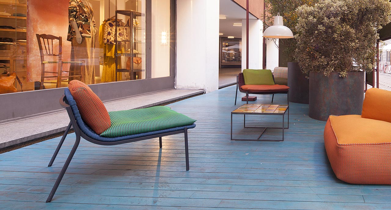 Milano, aprile 2017. In occasione della Settimana Internazionale del Design 2017, Paola Lenti e La Tenda Milano hanno presentato ACCORDI, un omaggio all’isola caraibica di Cuba, ai suoi colori, ai sorrisi della sua gente, così diversi da tutti gli altri e capaci di regalare forti emozioni: un tributo a una terra che affascina da sempre per la naturale energia vitale che trasmettono i suoi paesaggi e le sue atmosfere. Per ACCORDI, Paola Lenti ha scelto di realizzare versioni esclusive di alcuni nuovi prodotti, come i pouf Hopi in tessuto Kimia multicolor, abbinate a pezzi vintage reinterpretati da Marella Ferrera, in un gioco creativo di contaminazioni ispirate ai colori dell’isola, bruciati dal tempo ma sempre sorprendentemente brillanti, per ricreare un ambiente solare, sereno, libero e pieno di vita.