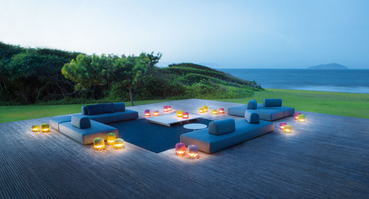 Lanterne per l’esterno utilizzabili sia a terra sia a tavolo.