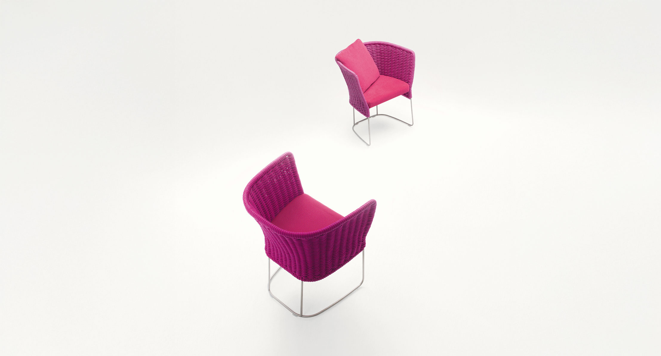 Con il rivestimento in corda Twiggy, che lascia in parte visibile la struttura in acciaio, struttura e base sono disponibili solo verniciate lucide ed entrambe nello stesso colore.