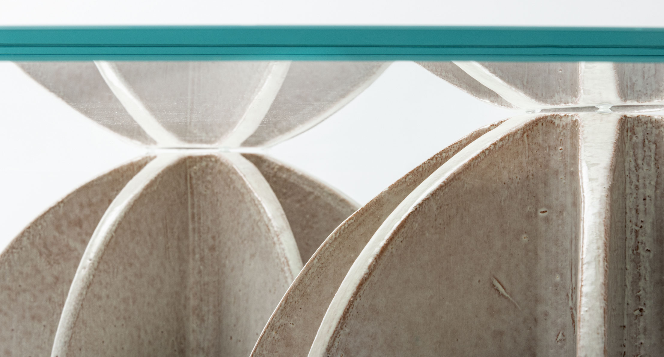Gli elementi che formano la base del tavolino sono realizzati e decorati a mano con colori esclusivi da Nicolò Morales.