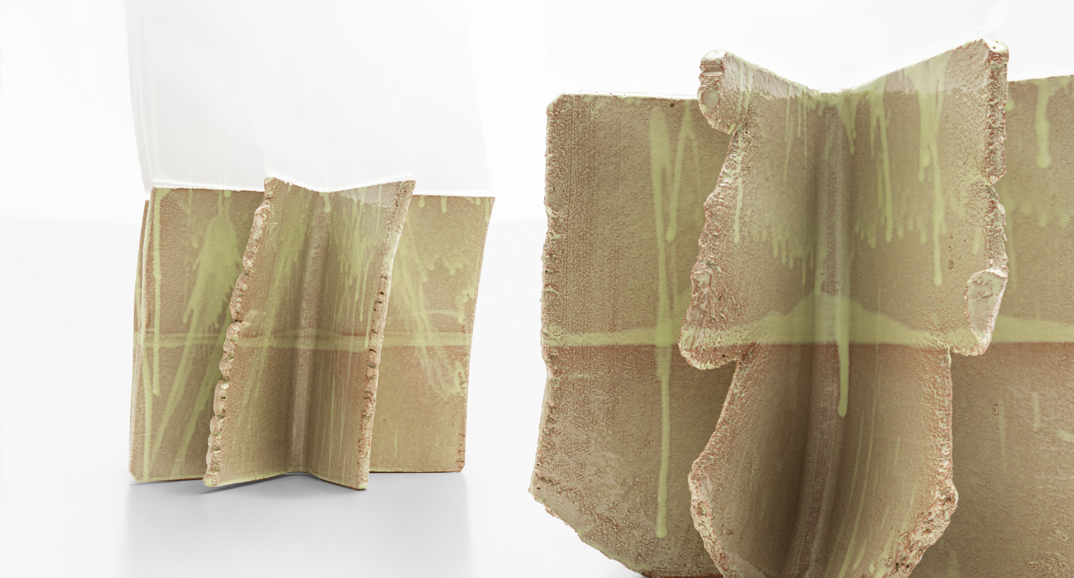 Base: elementi estrusi in maiolica posizionati secondo uno schema prestabilito.