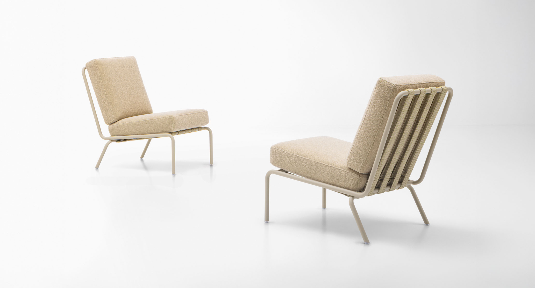 I cuscini di seduta e di schienale sono indipendenti e semplicemente appoggiati sulla struttura.