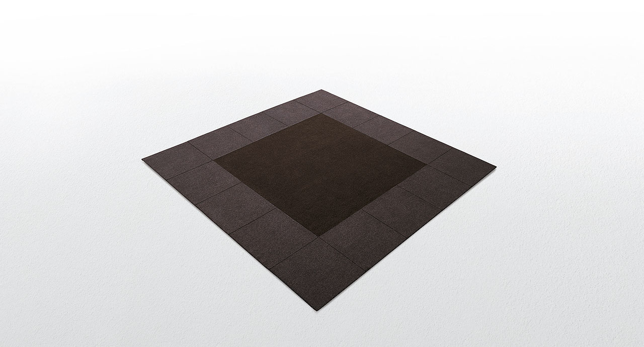 Cornice 50 è un tappeto in feltro realizzato dall’unione di elementi cuciti a punto Cavallo.