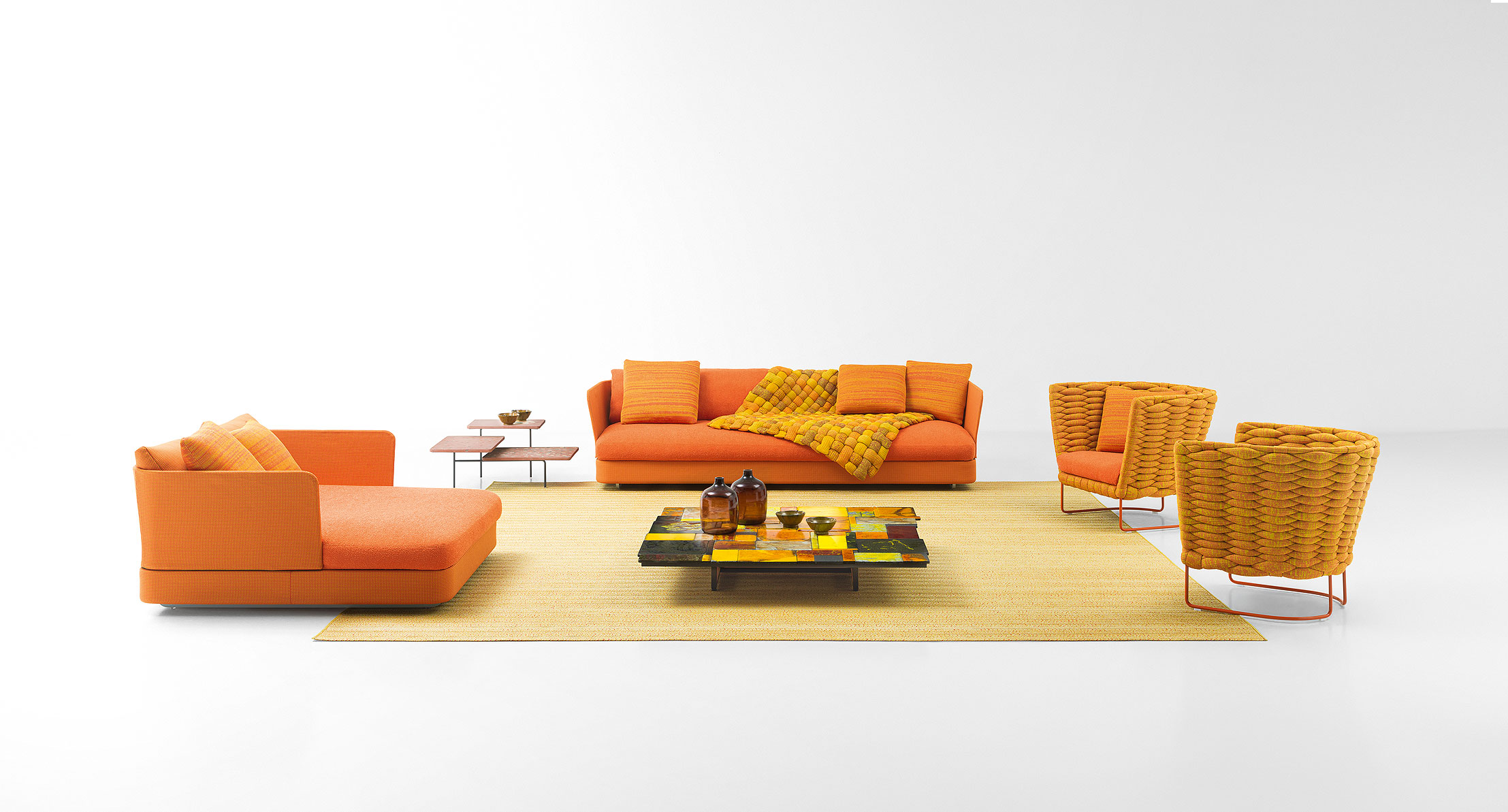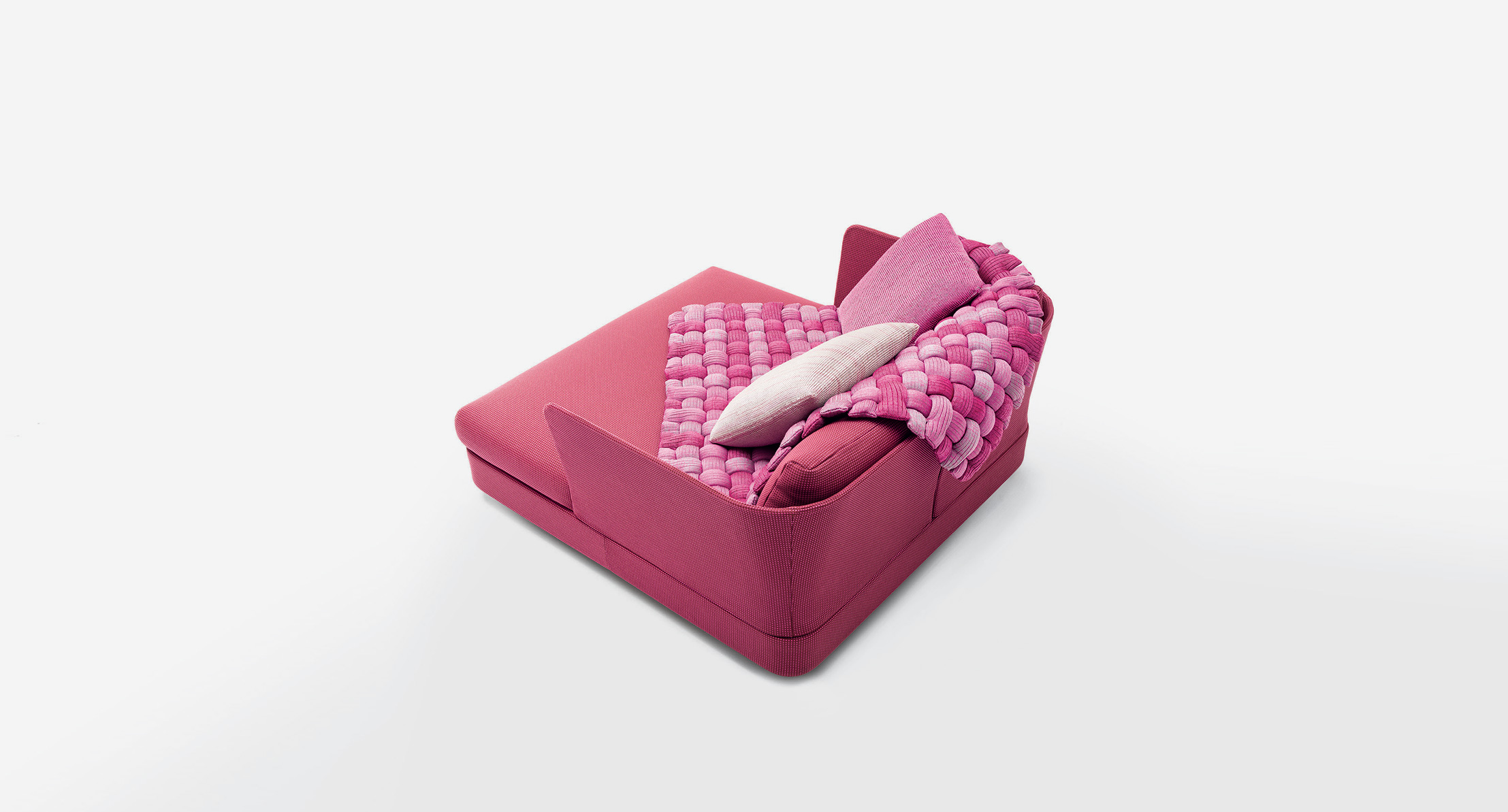La struttura, gli schienali e i braccioli di Cove sono normalmente rivestiti con lo stesso tessuto; nel caso si scegliesse il tessuto Rope M per la struttura, va considerato che schienali e braccioli saranno sempre realizzati in tessuto Rope T.