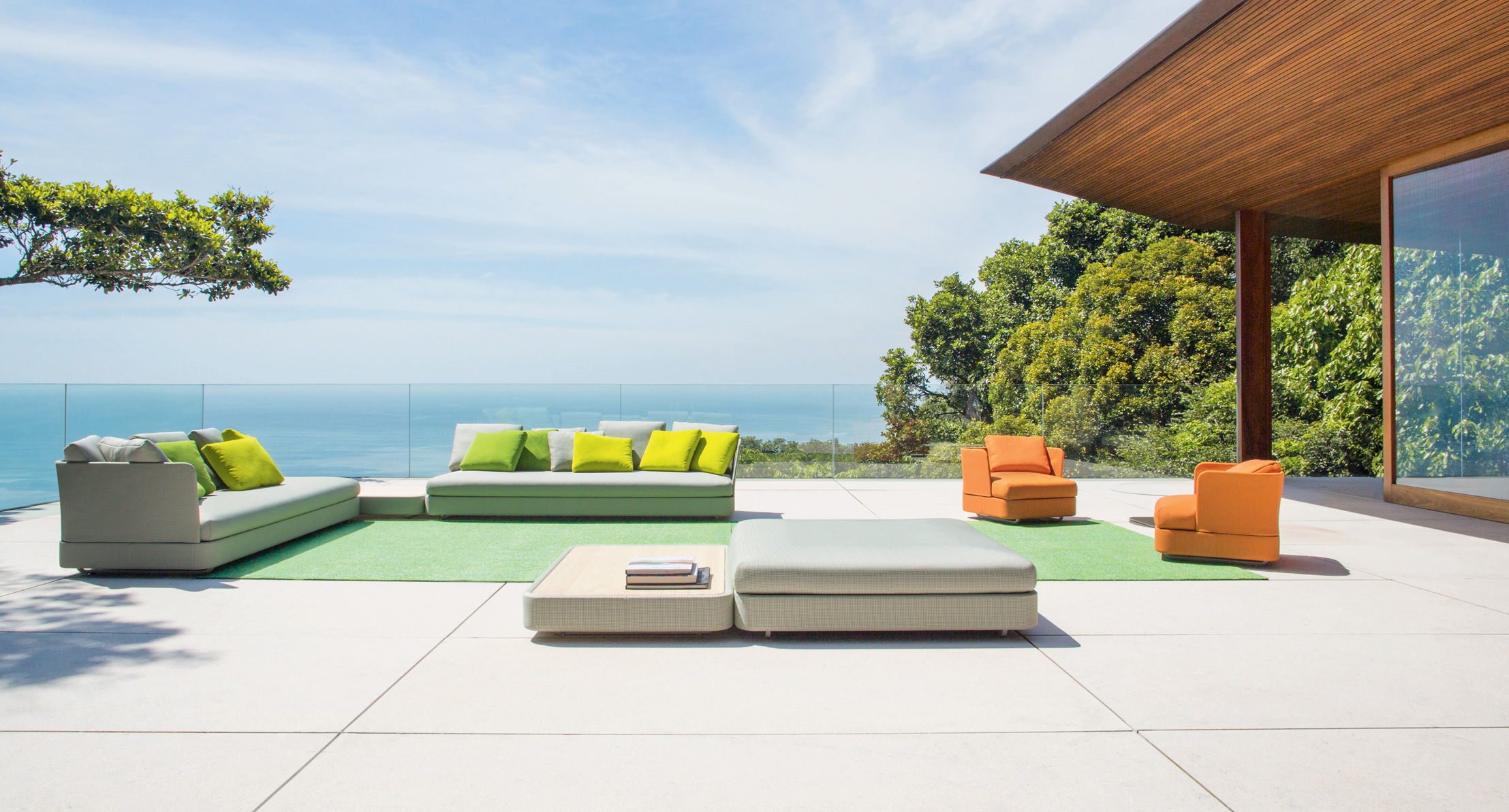 La serie Cove comprende anche poltroncina, lettino con schienale regolabile e tavolini.