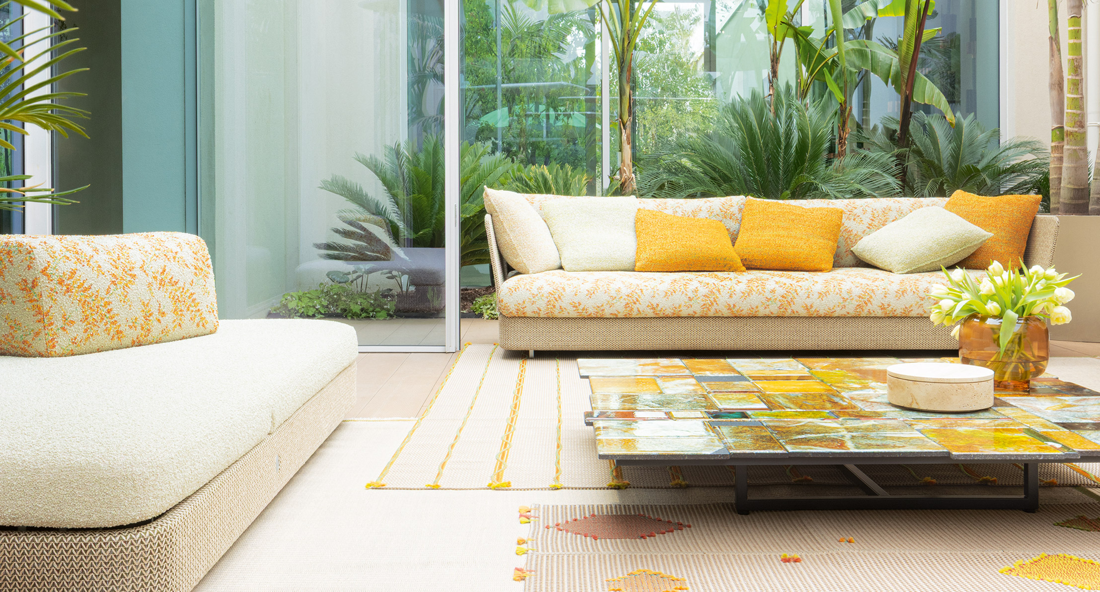 Rivestimento schienali e braccioli: sfoderabile e disponibile nei tessuti Brio, Thea, Rope T mélange, Rope T, Wara, Aquatech o Thuia.
