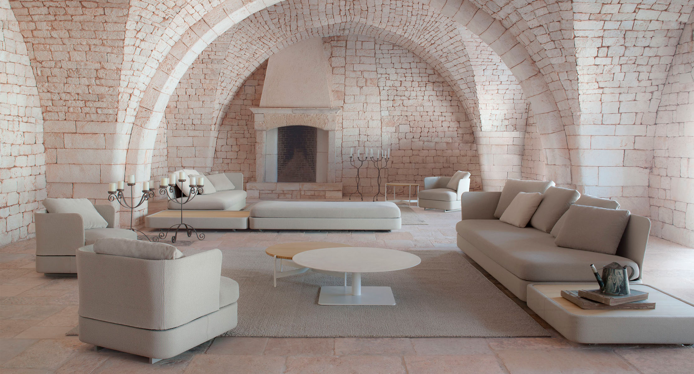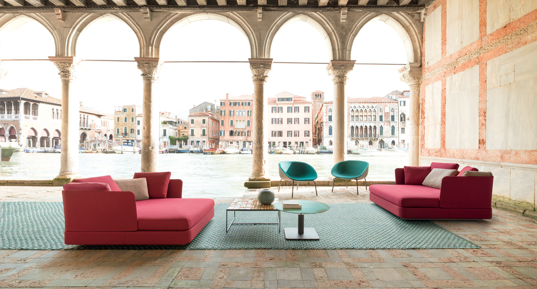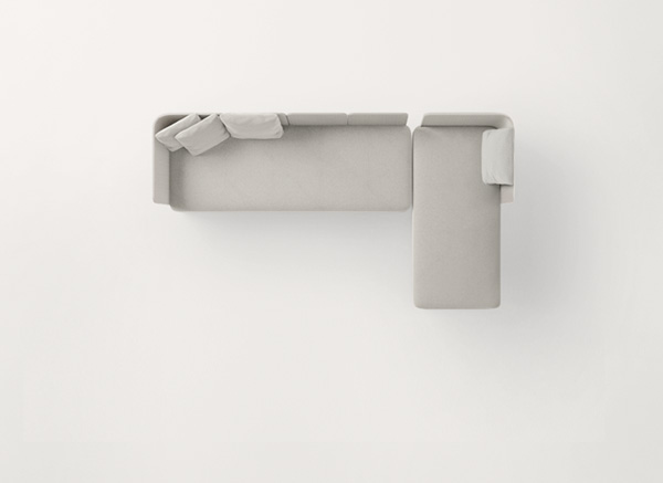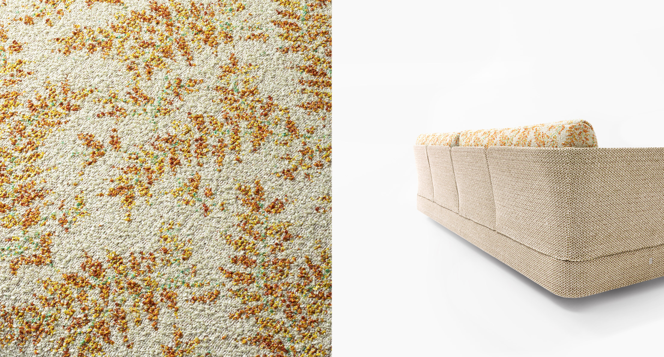La struttura, gli schienali e i braccioli di Cove sono normalmente rivestiti con lo stesso tessuto; nel caso si scegliesse il tessuto Rope M per la struttura, va considerato che schienali e braccioli saranno sempre realizzati in tessuto Rope T.