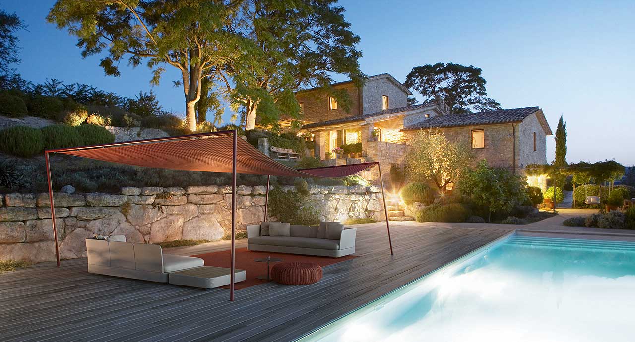 In alternativa, è possibile utilizzare cuscini di schienale modulari realizzati con imbottitura in fibra di poliestere riciclata e biodegradabile, inserto in poliuretano indeformabile, fodera fissa in poliestere idrorepellente e rivestimento sfoderabile e disponibile nei tessuti outdoor indicati qui sotto.