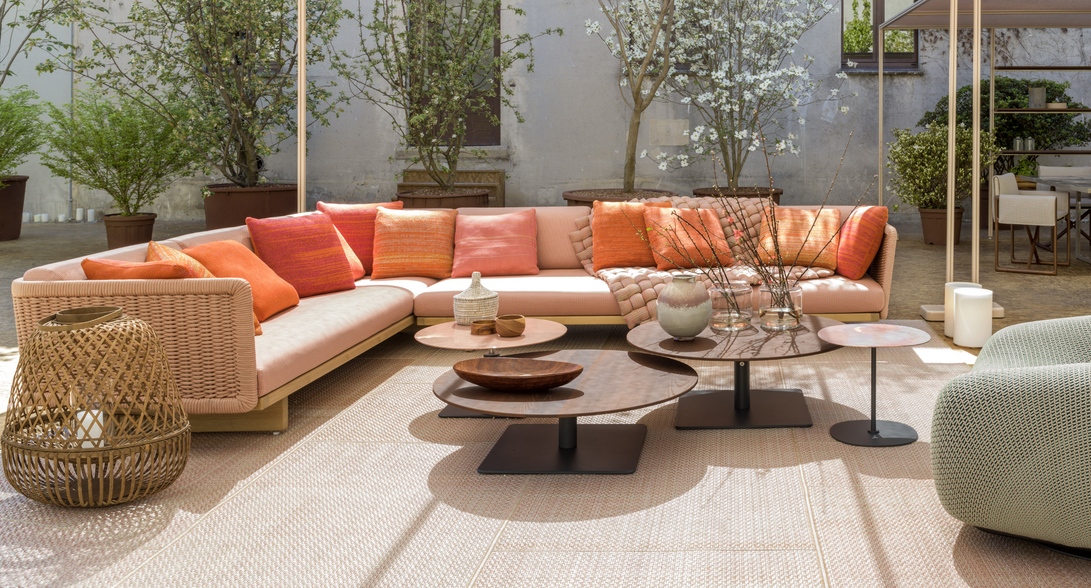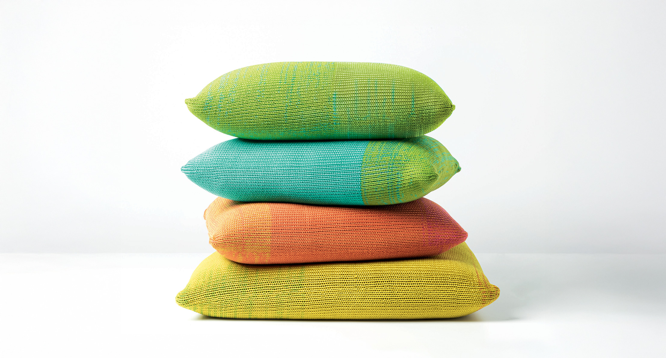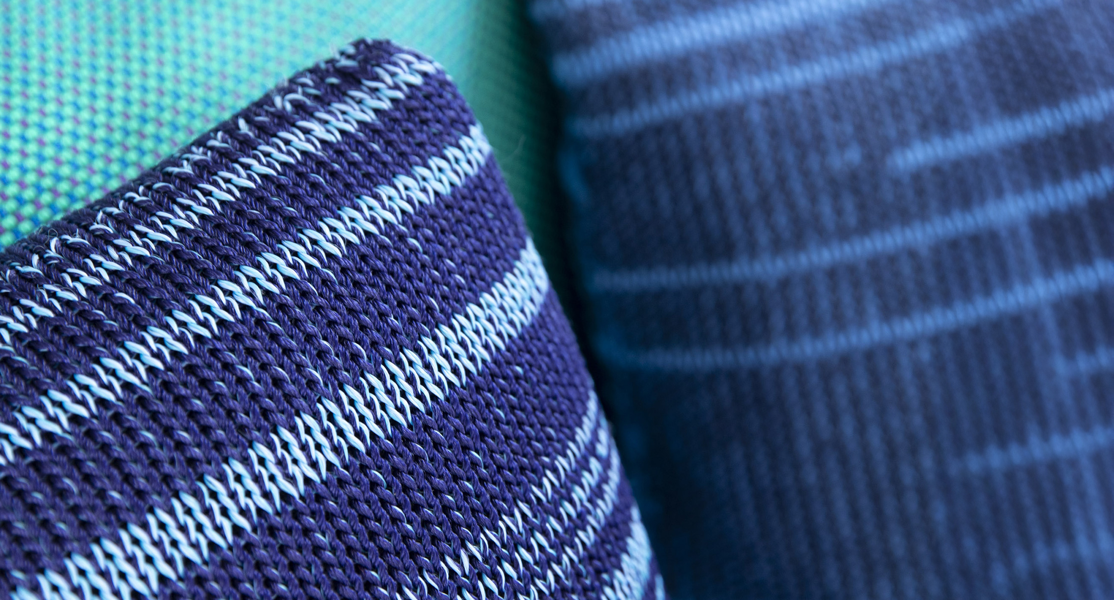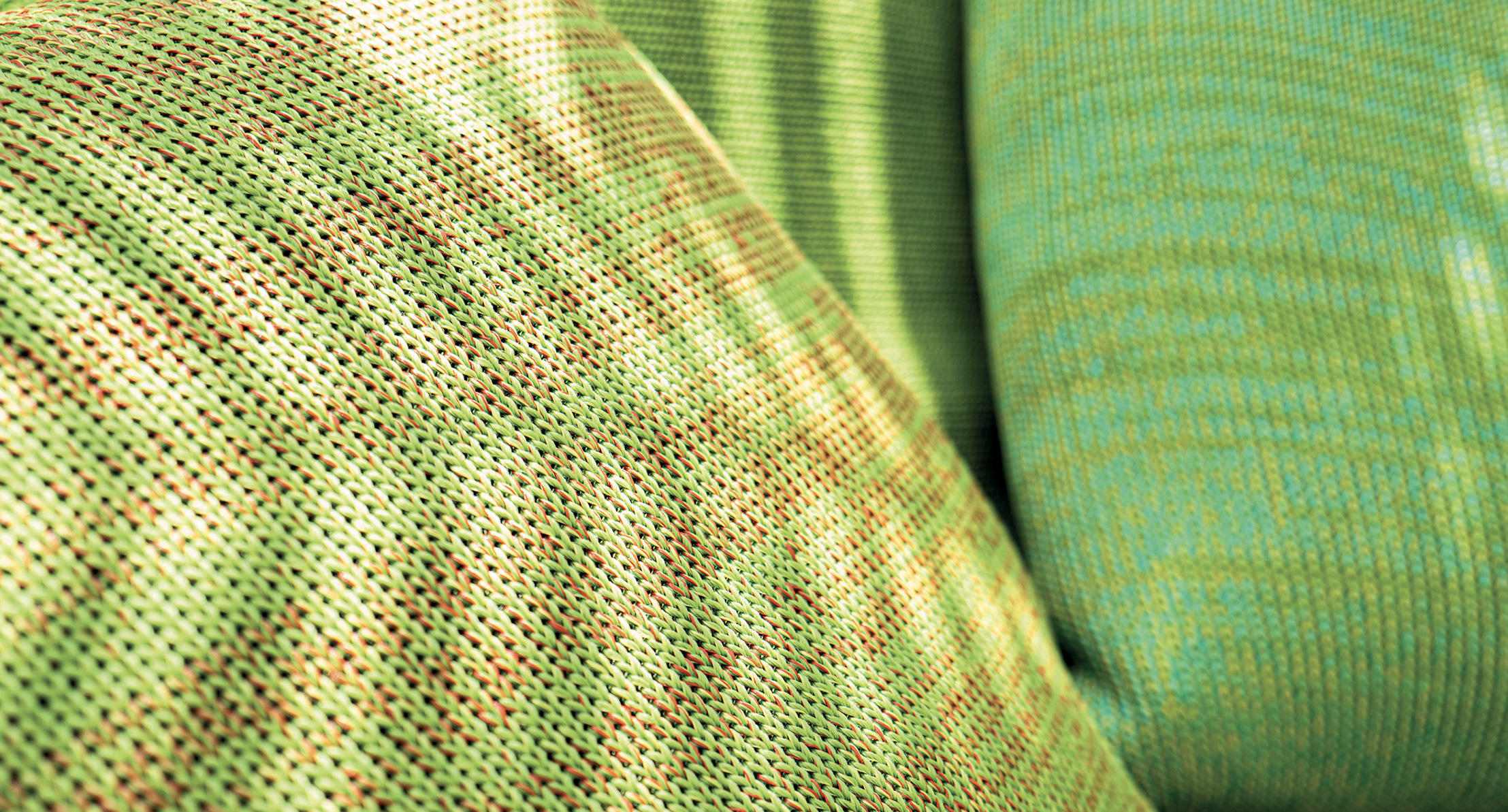 Le tonalità della maglia utilizzata per il rivestimento sono ottenute mischiando filati in poliolefine avanzati dalla tessitura dei tessuti per esterno di collezione.