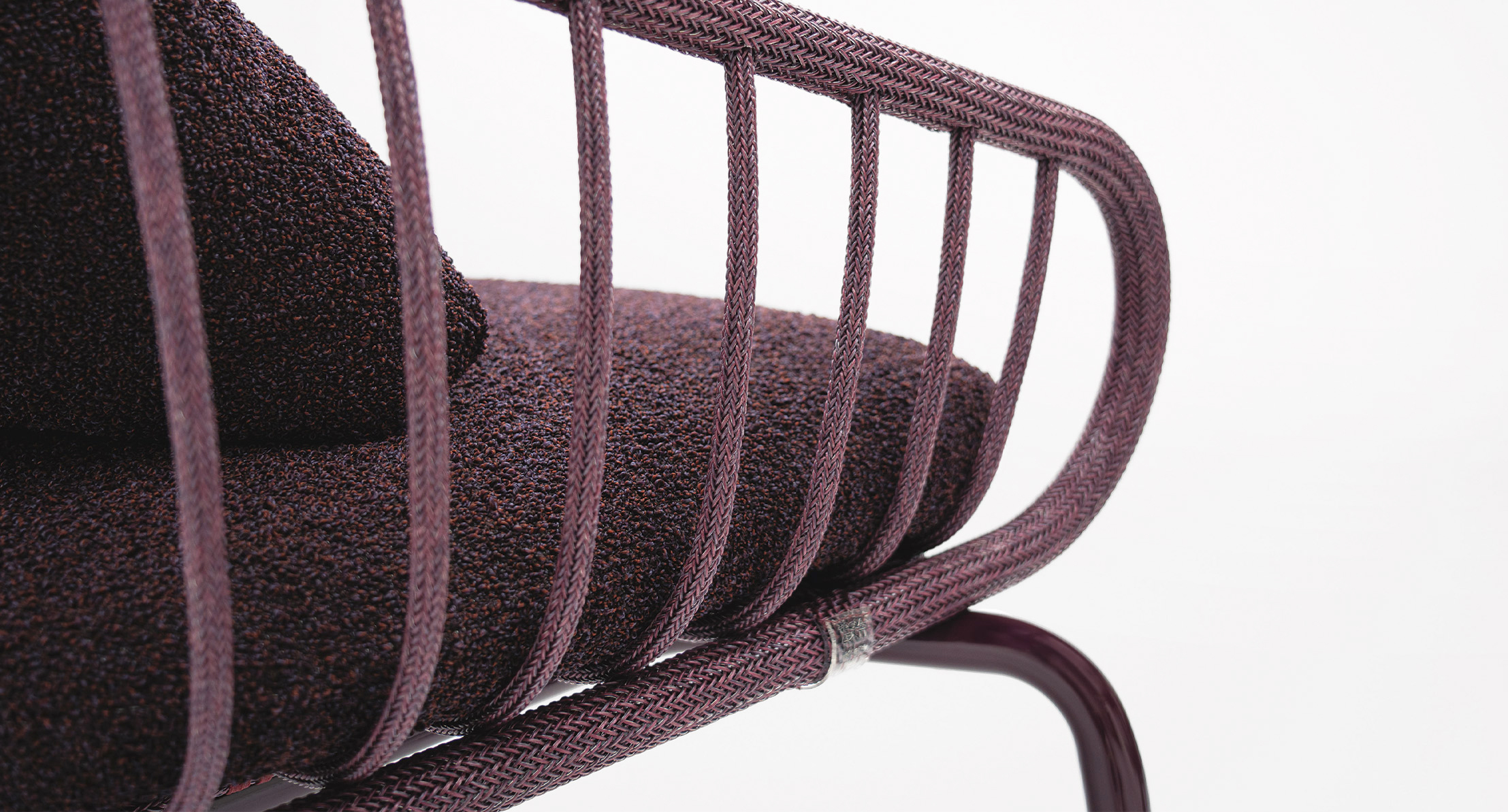 Imbottitura cuscino di seduta: fibra di poliestere riciclata e biodegradabile, inserto in poliuretano espanso indeformabile, fodera interna fissa in poliestere idrorepellente.