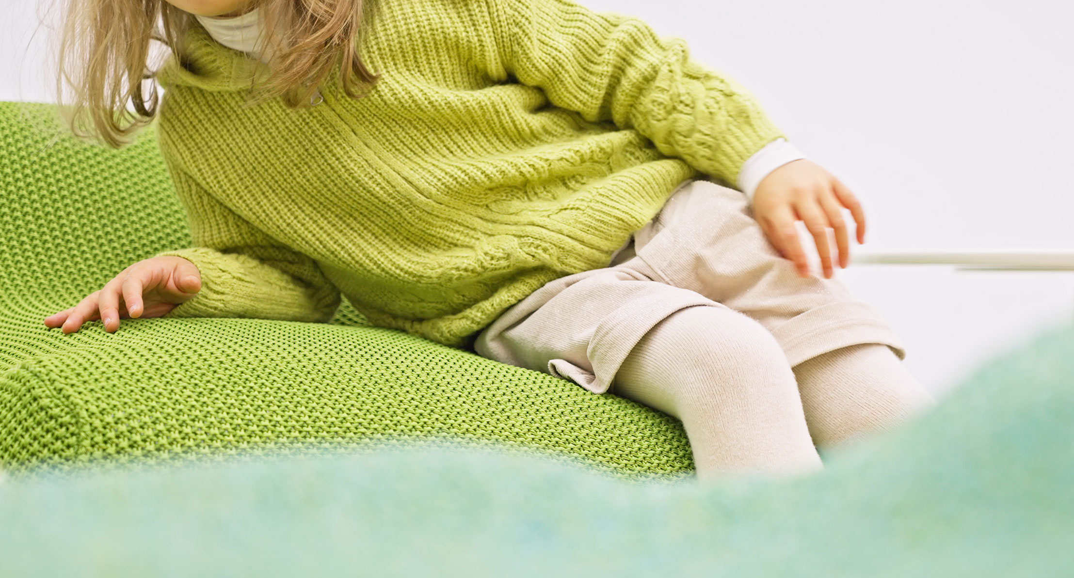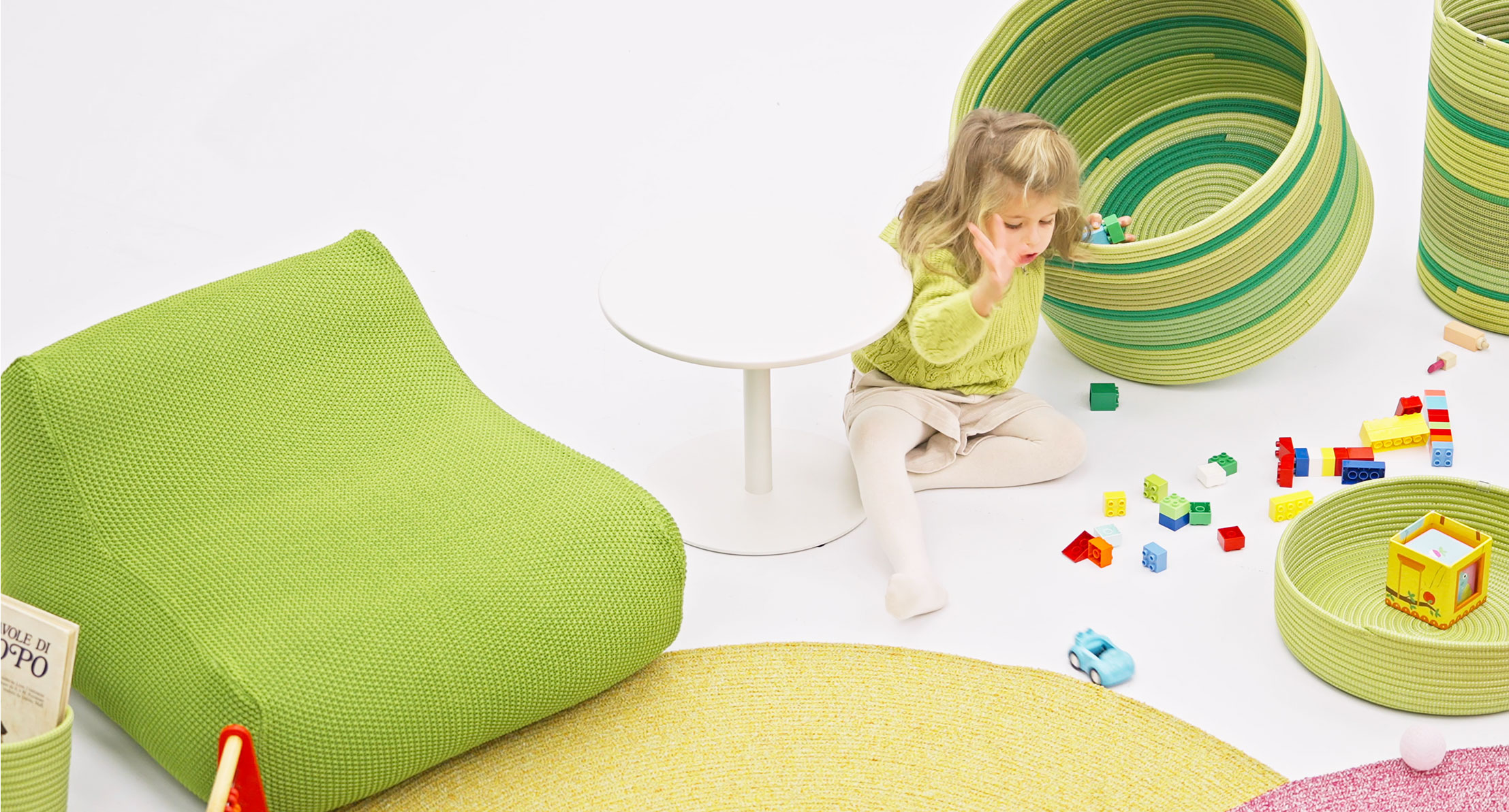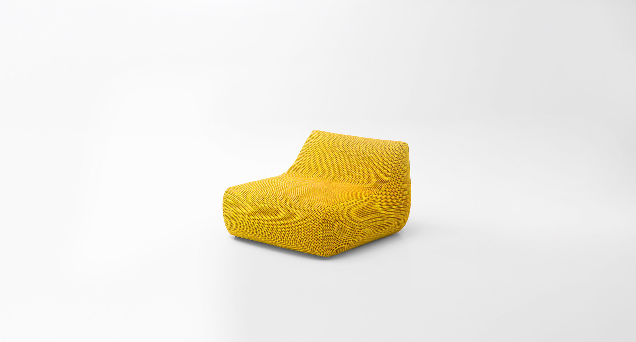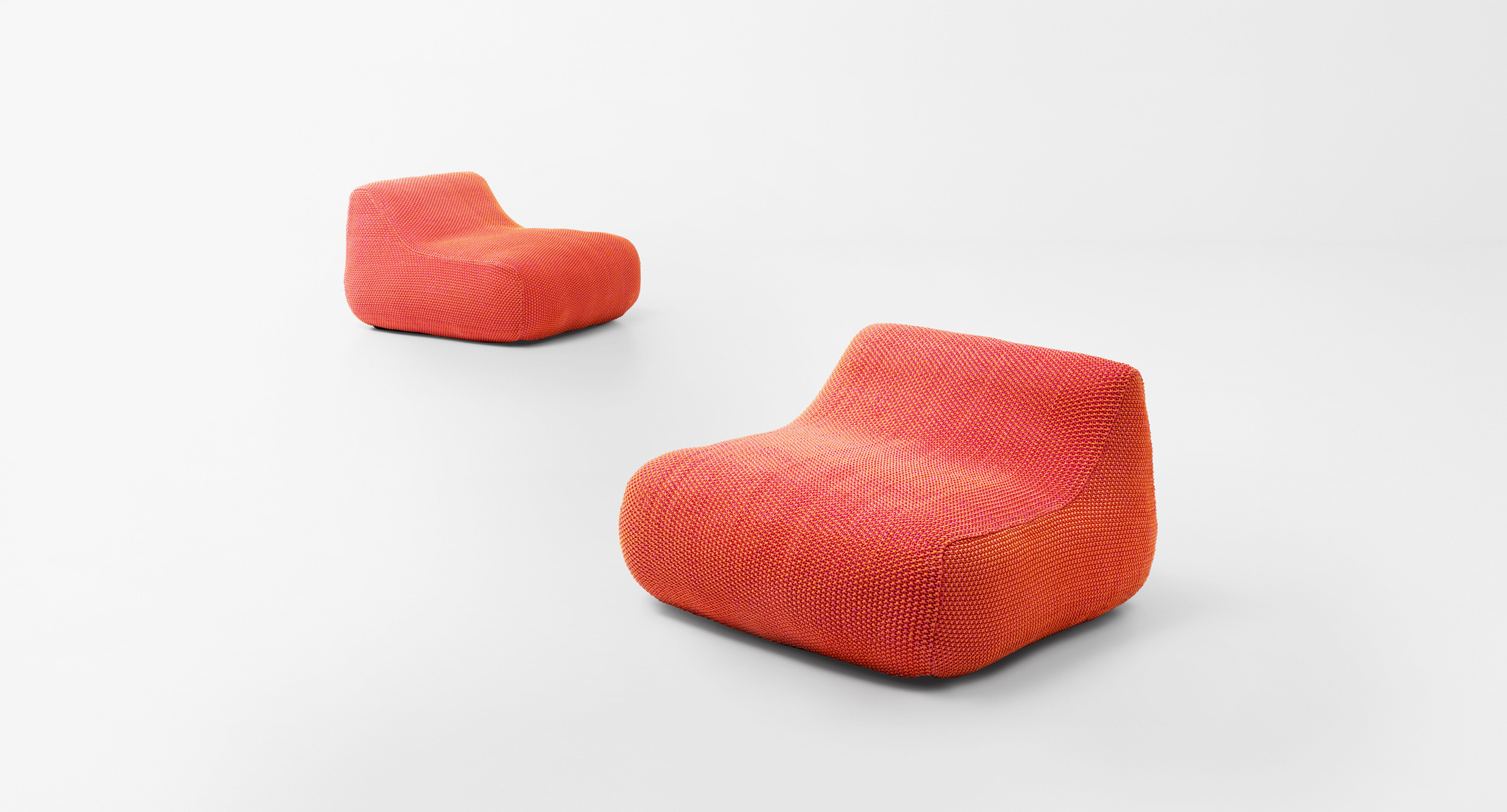 La maglia di rivestimento è una esclusiva Paola Lenti che si rifà alla tradizione rendendola contemporanea, riprendendo, variandone la scala, la lavorazione classica della “grana di riso”.