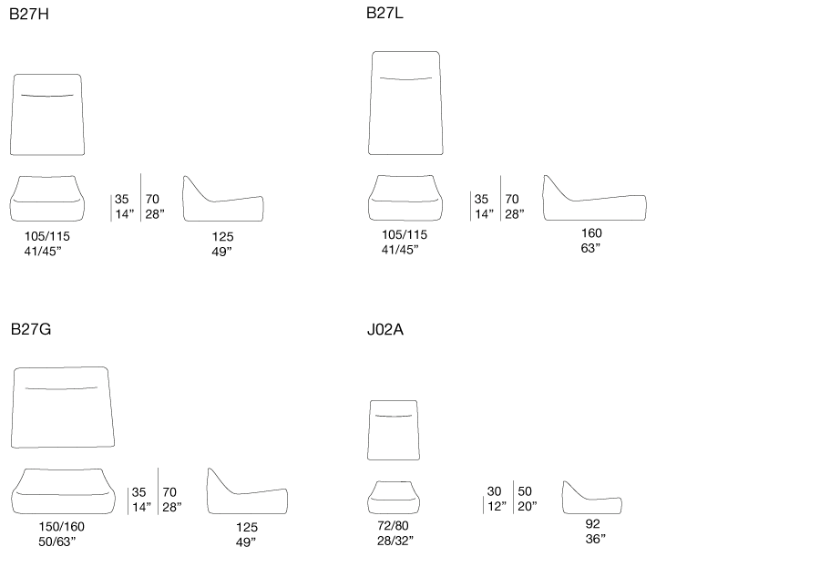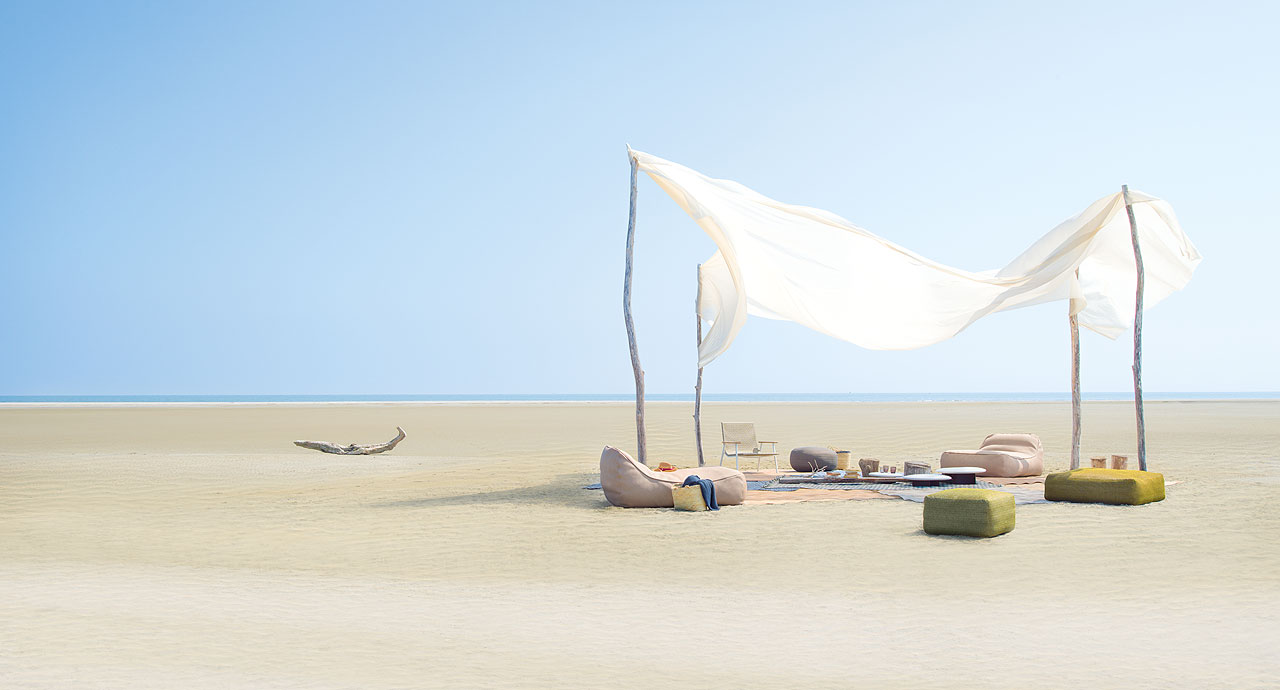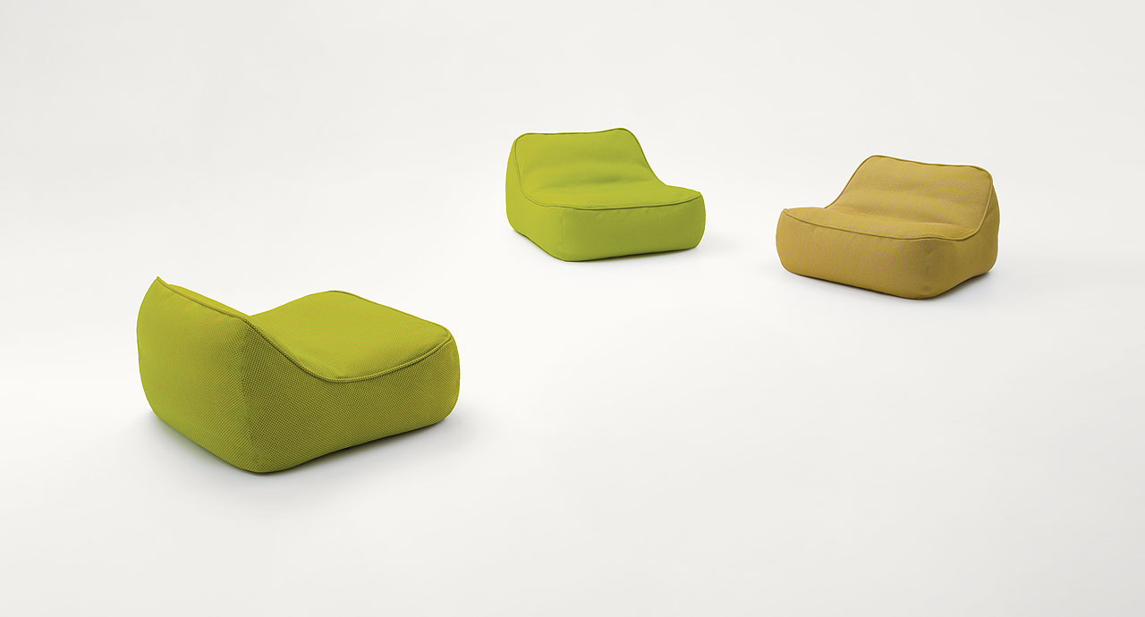 La serie Float comprende anche una piattaforma e pouf disponibili in diverse dimensioni.