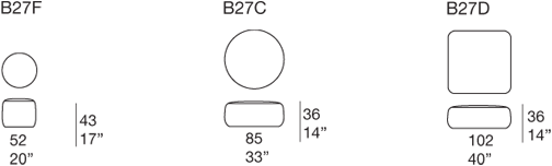 Pouf disponibili in diverse dimensioni. La serie Float comprende anche poltrona, chaise longue e divano due posti disponibili nelle stesse finiture.