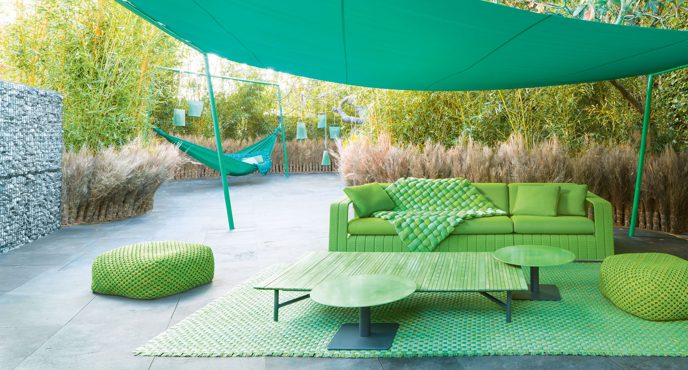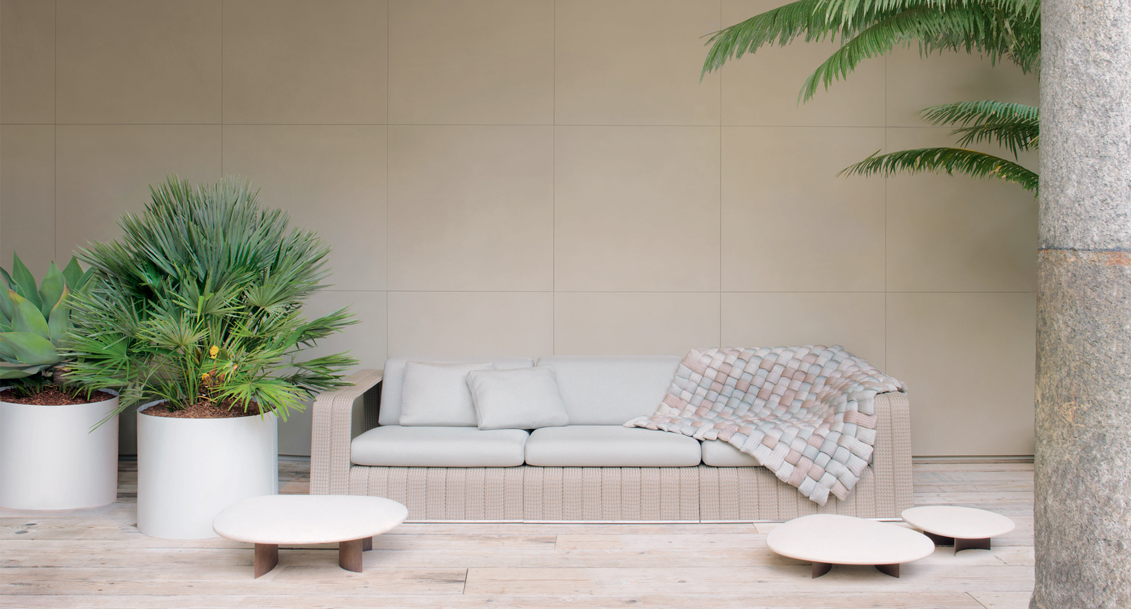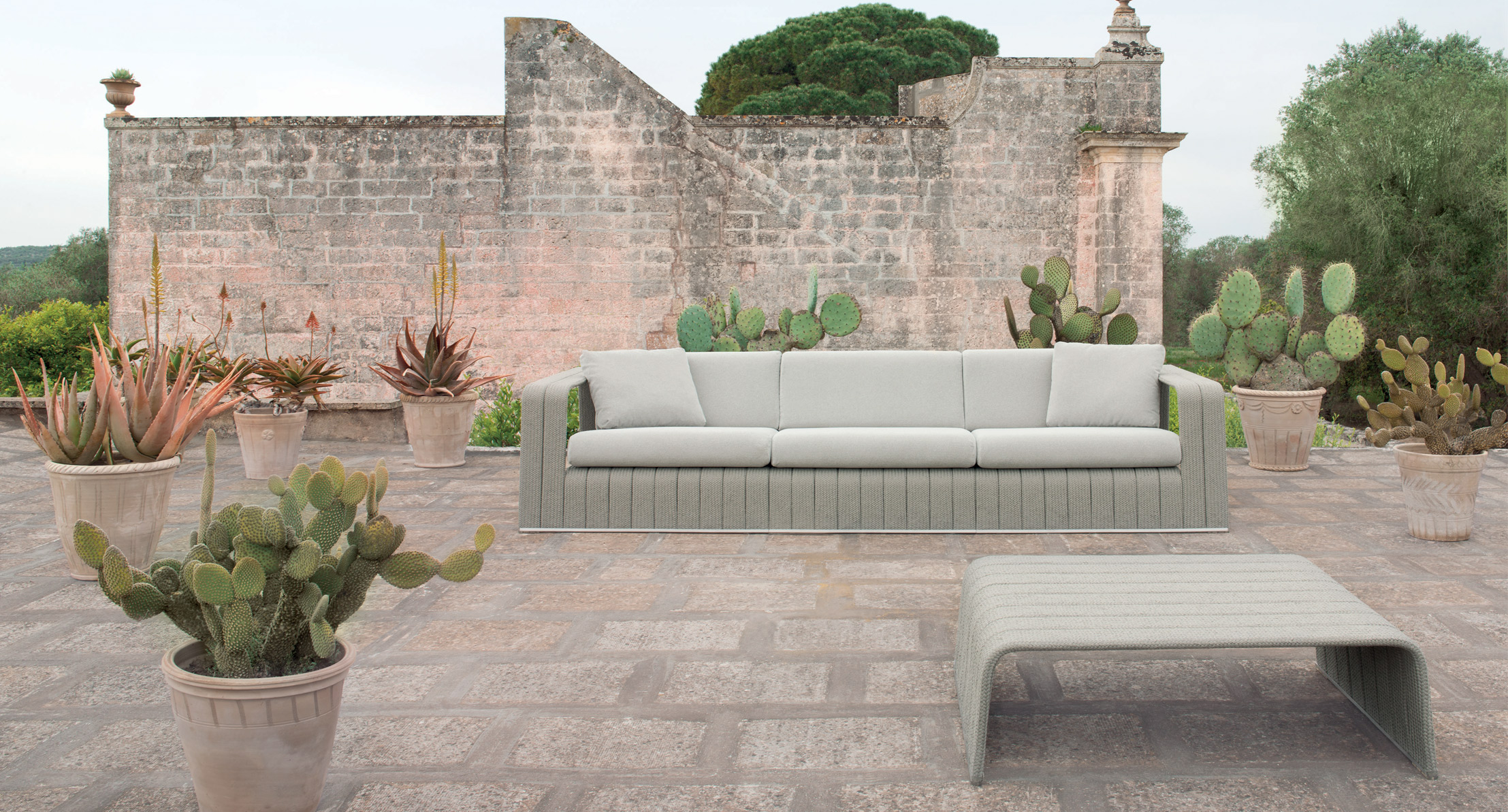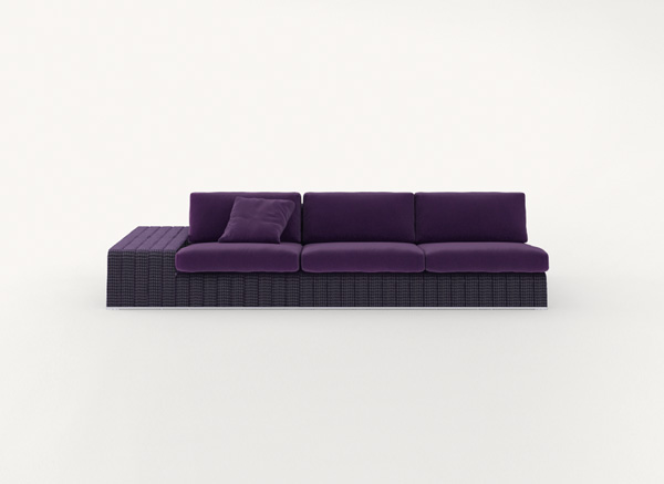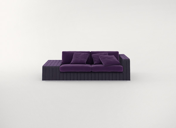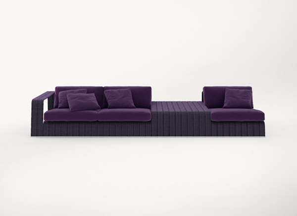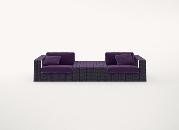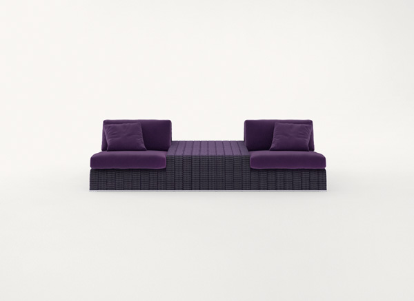 La serie Frame comprende anche sedia, piattaforme, chaise longues, panche e tavolini