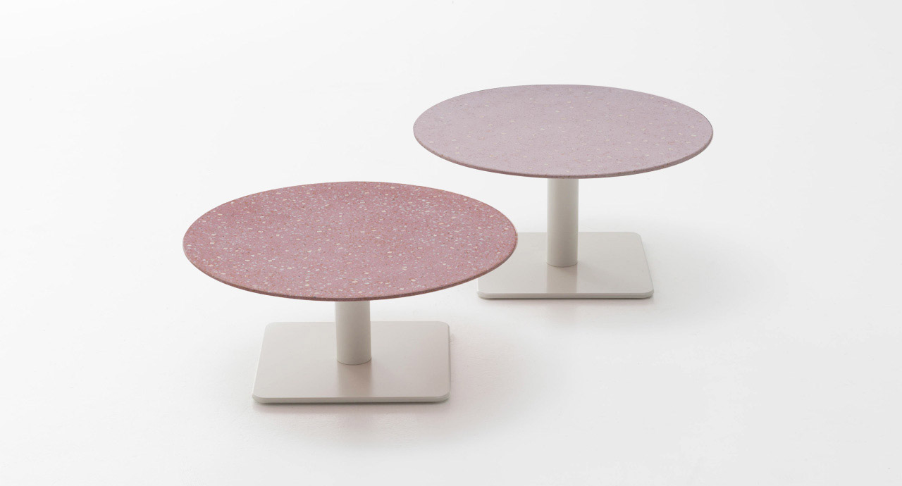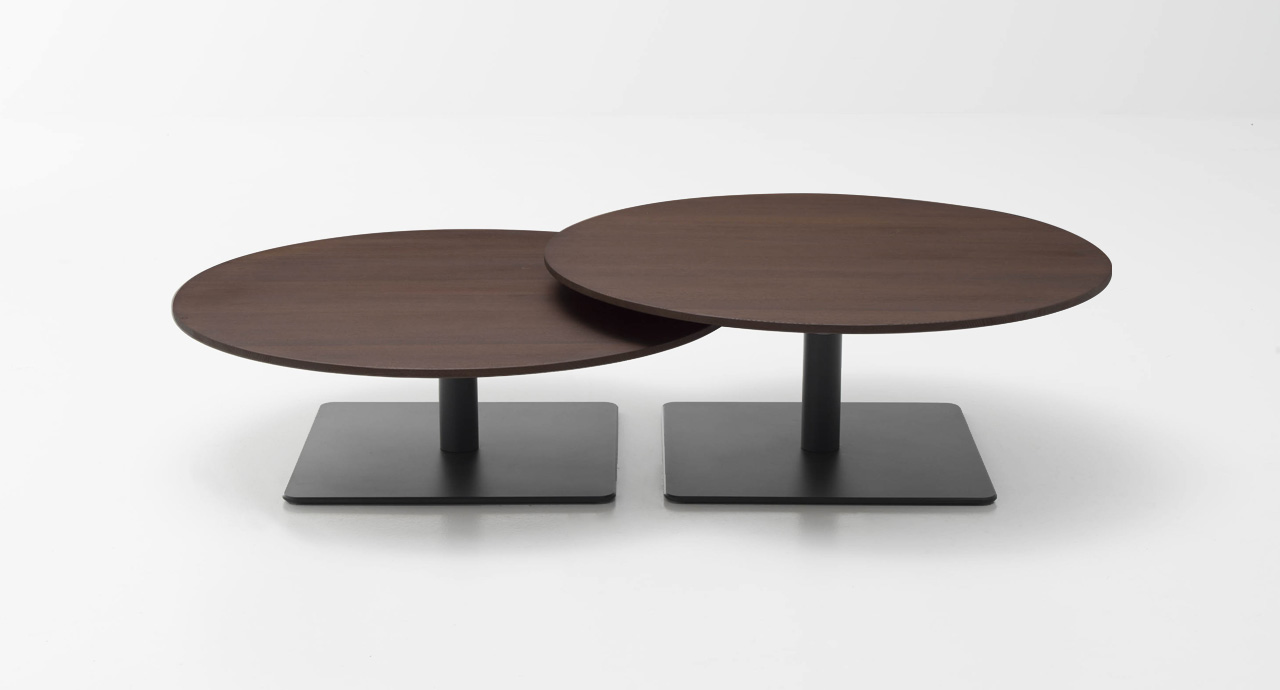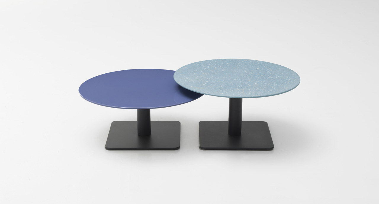 La serie Giro comprende anche tavoli alti disponibili nelle stesse finiture.