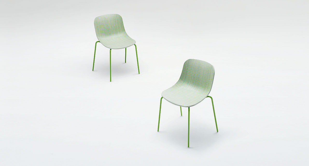 La sedia Iole è impilabile fino a tre elementi.