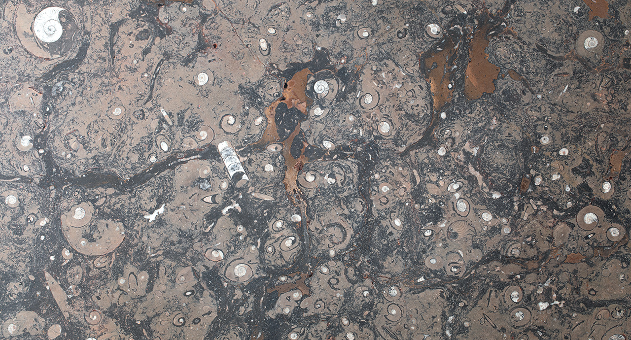 I marmi attualmente disponibili sono il Fossil Brown (in esaurimento) e il Caravaggio.