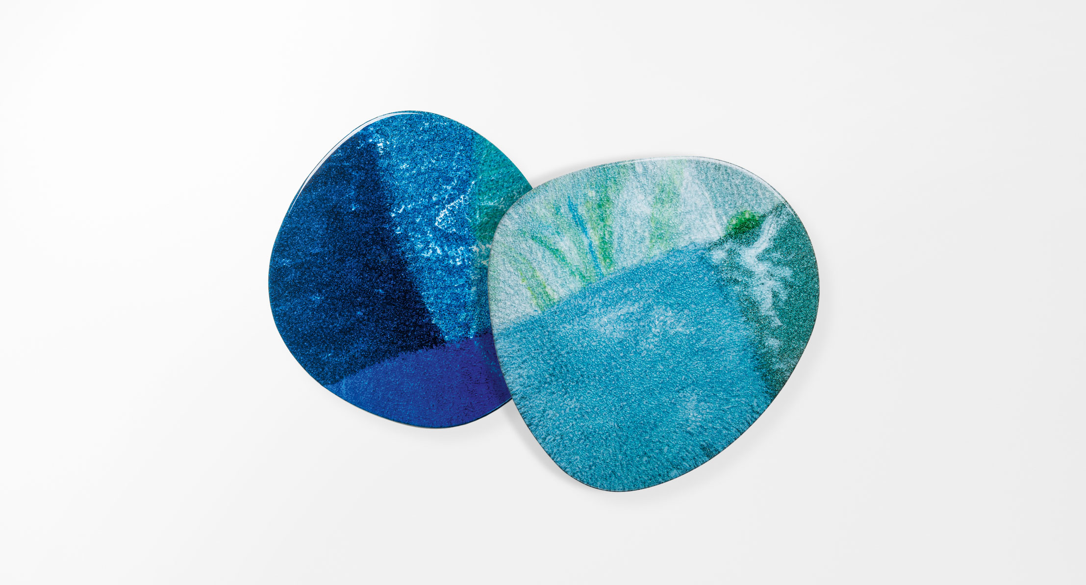La decorazione dei piani in Sciara è realizzata a mano e rende unico ogni singolo pezzo. I piani di base, in pietra lavica naturale, hanno uno spessore di mm 12: il bordo può risultare solo in parte decorato in vetro secondo il comportamento che assume il materiale durante la lavorazione.
