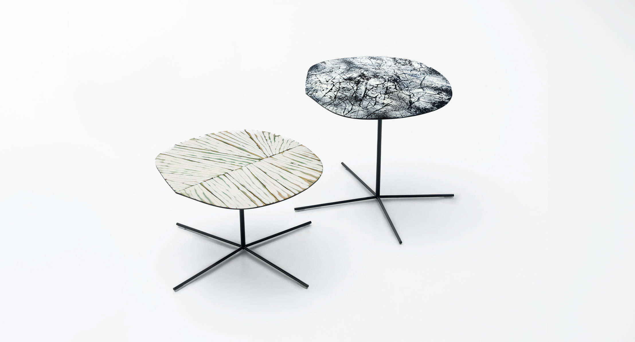 La smaltatura Esmal è ottenuta da Alessandra Malfatti con tecniche di produzione manuali che rendono ogni piano diverso dagli altri, unico ed esclusivo. L’irregolarità, sia dei colori sia delle superfici, è la loro caratteristica distintiva.