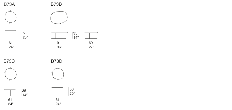 Base per tavolini con piano in Esmal: acciaio verniciato opaco color grigio lava, puntali in materiale plastico.
