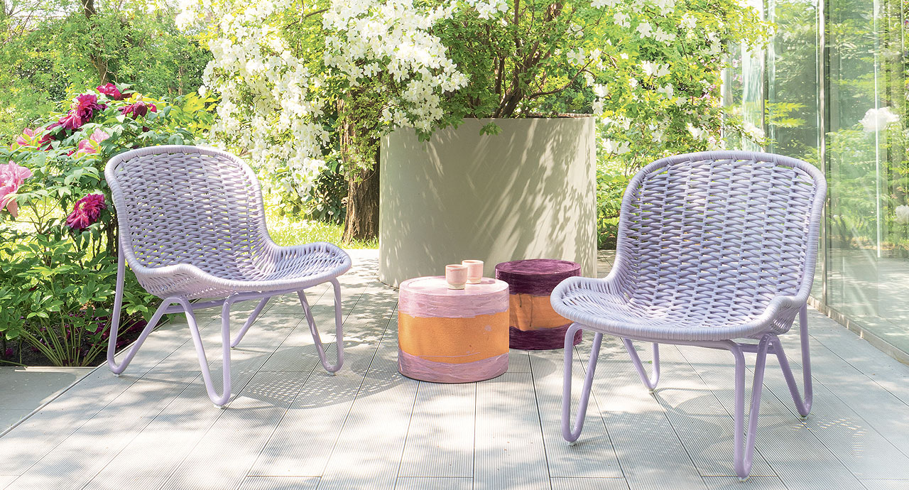 Jardin, lounge chair, Twiggy cord TYT055, structure LML415. Sun bed, Twiggy cord TYT043, structure LML403