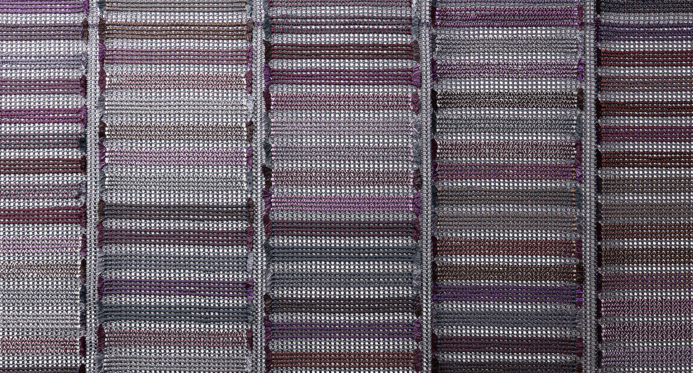 Le trecce sono cucite a punto Zigzag, con un filo in colore abbinato o a contrasto, su strisce alte cm 35 in tessuto Kimia.