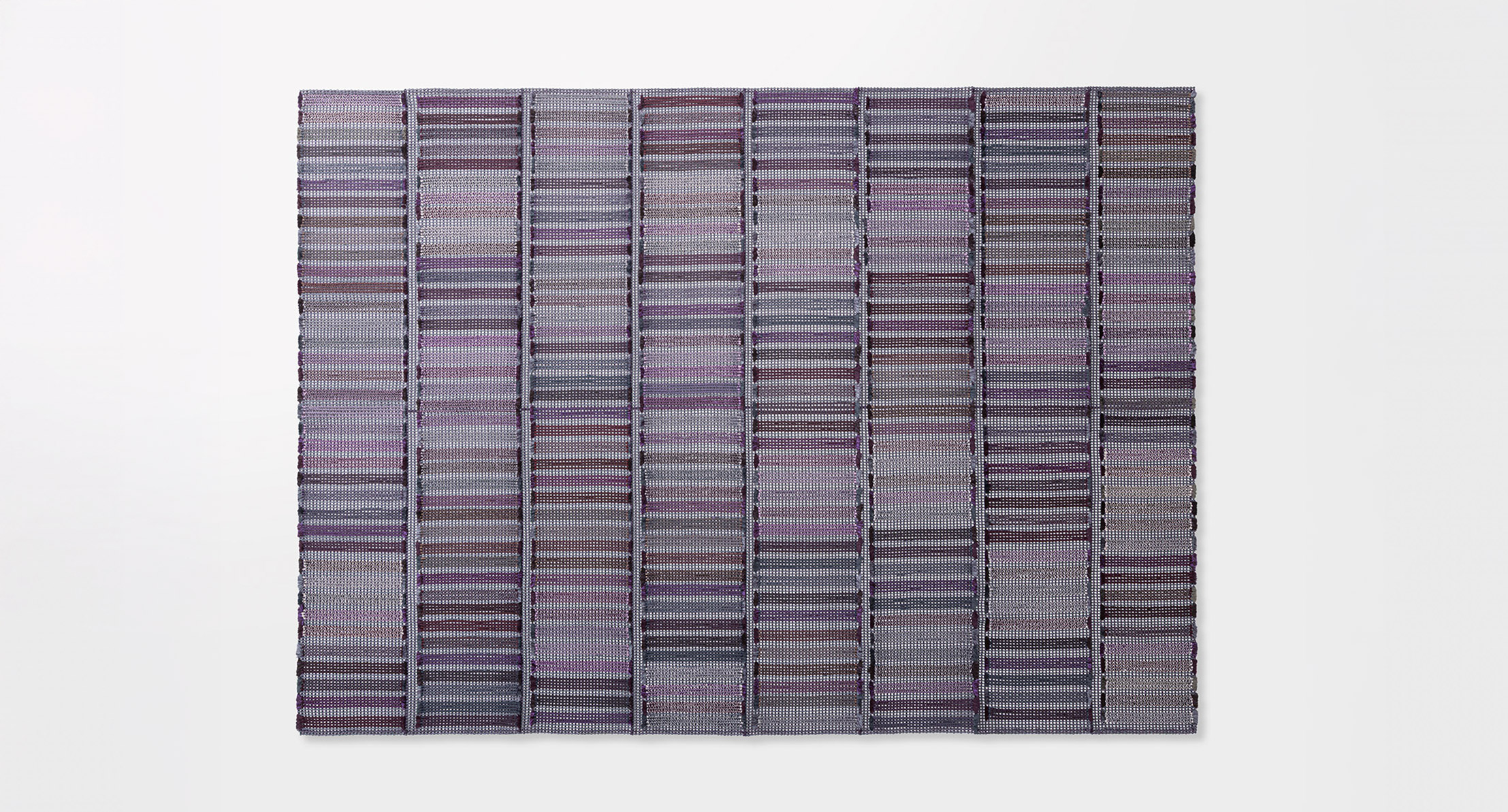 Le strisce in tessuto, il cui numero varia in funzione delle dimensioni del tappeto, vengono successivamente unite fra loro in senso longitudinale a punto Zigzag.
