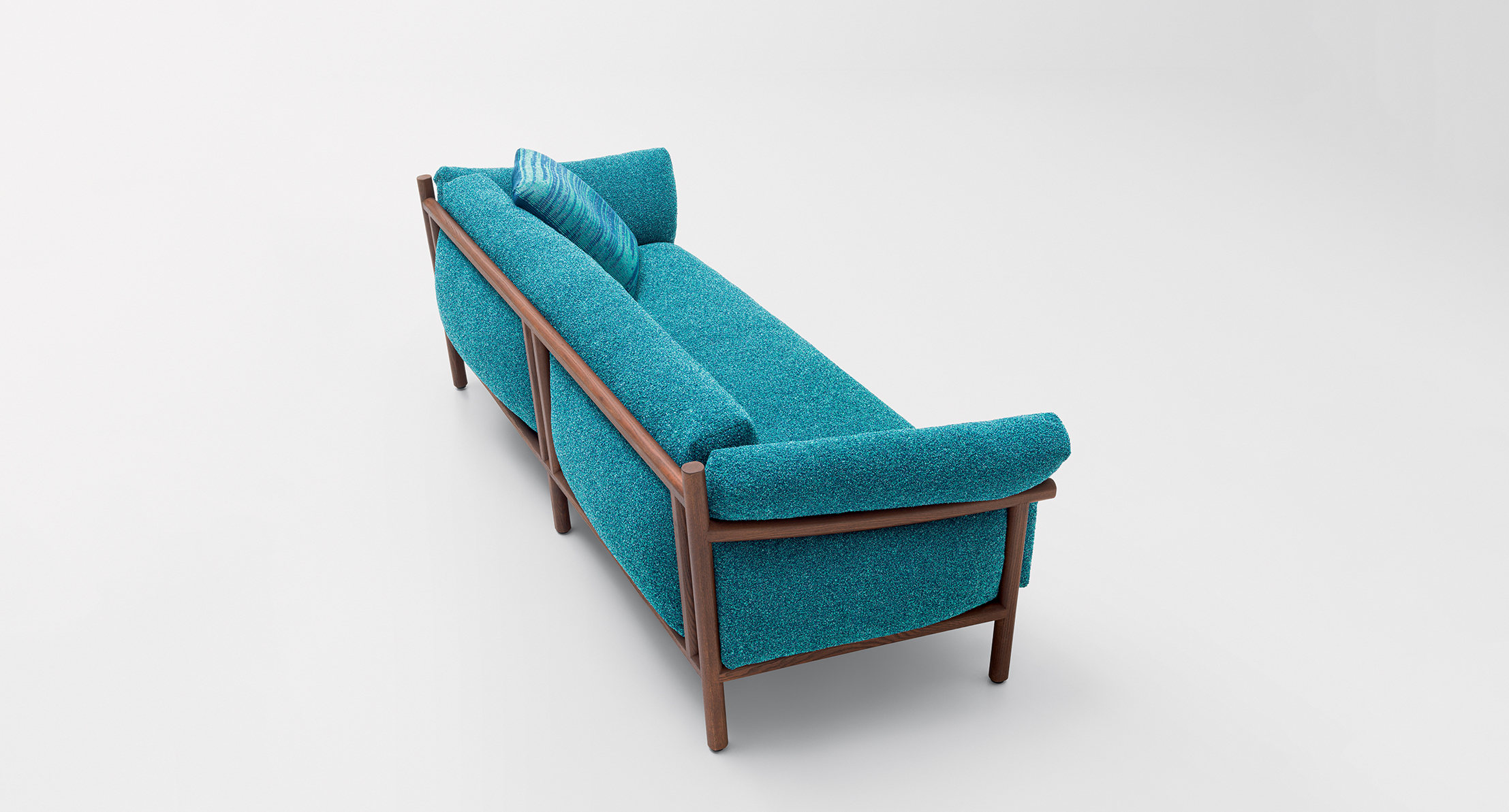 I cuscini di seduta, di schienale e i braccioli sono semplicemente appoggiati all’interno della struttura in legno e sono uniti fra loro in modo da mantenere la stabilità necessaria a garantire il massimo del comfort.